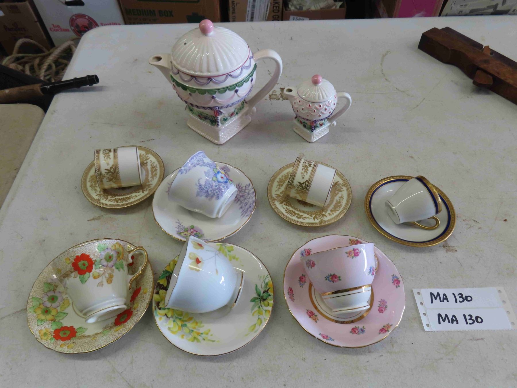 Small + Large Tea Pot, 7 Cups + Saucers