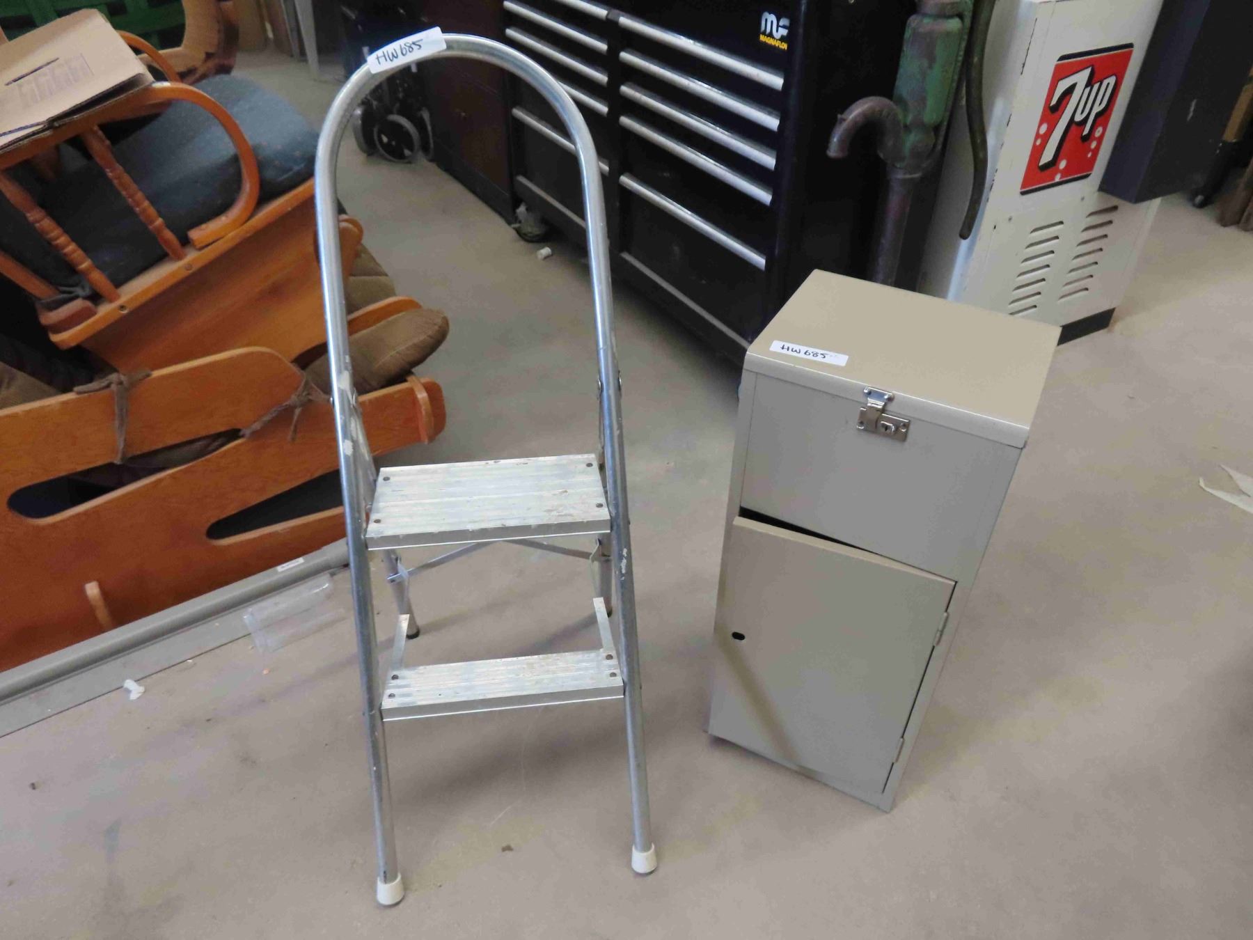 Small Metal File Box 29 '' x 11 1/2 '' x 10'' , 2 Aluminum Step Ladders