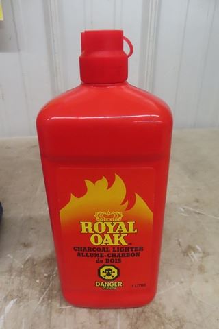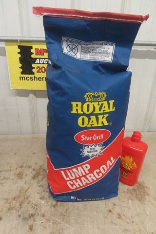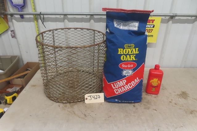 Small Metal Garbage Can 16"×17", Bag of Charcoal, Lighter Fluid