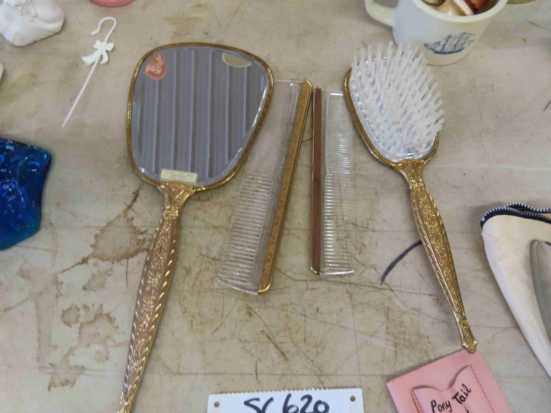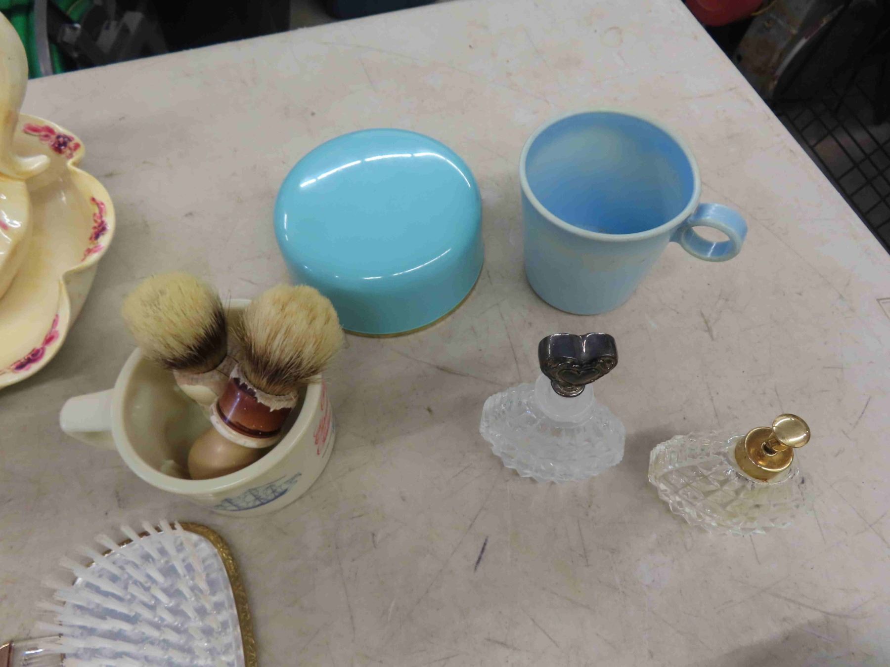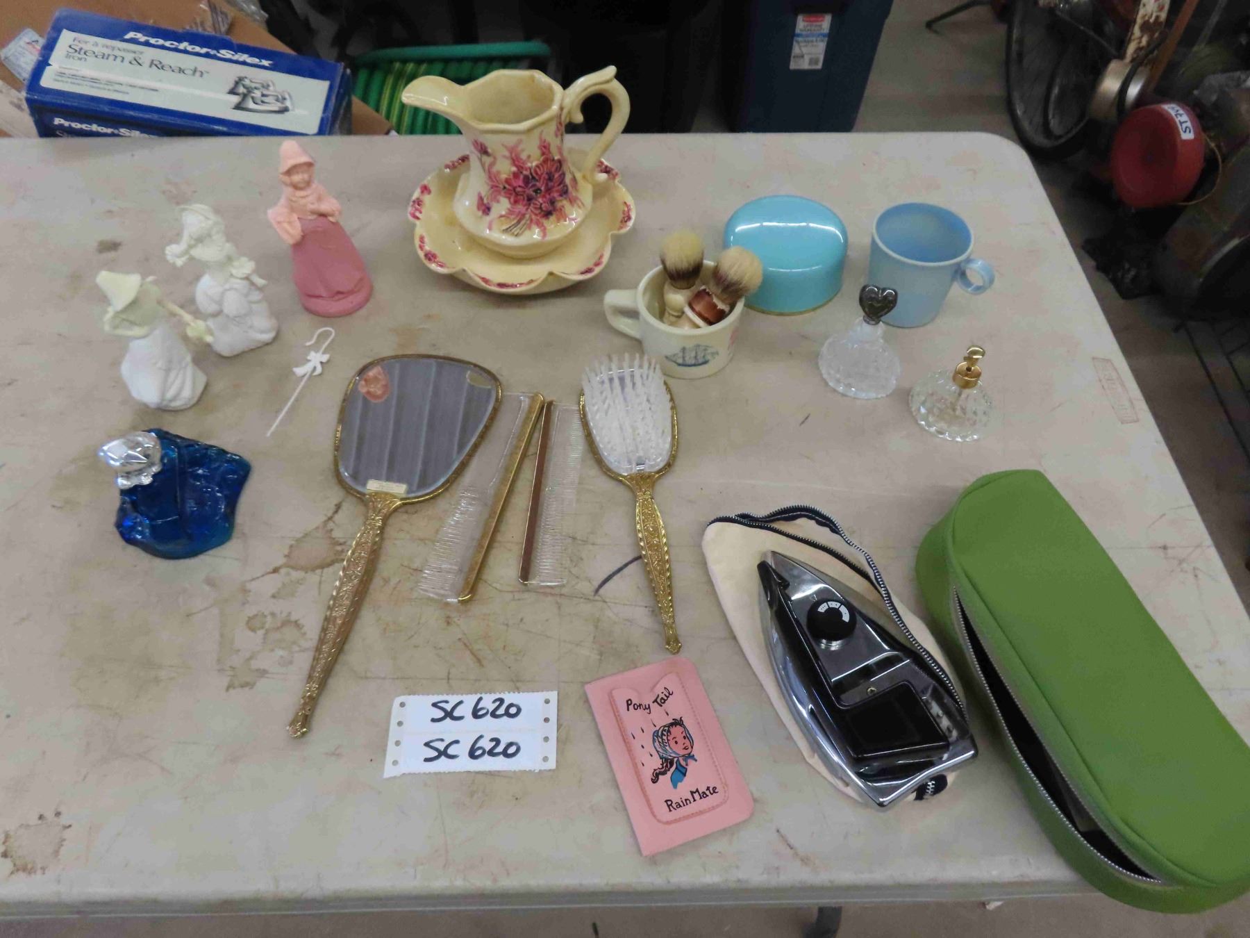 Small Porcelain China Wash Jug + Basin, Travel Iron, Dresser Brush + Mirror set, Shaving Mug + Brush, Perfume Bottles, plus more