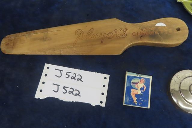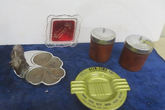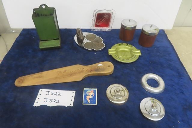 Smokers Lot; 1912 Winnipeg Ashtray, Slim Jim Ashtray, Match Safe, Players Wood Paddle, Ashtray Parts