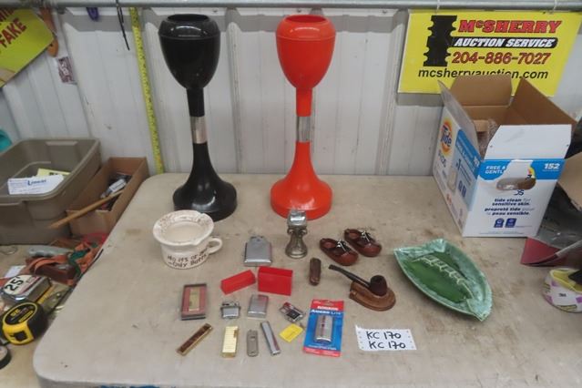 Smoking Lot- Mid Century Ashtray Stands 20" Tall, Lighters, Ashtrays plus more