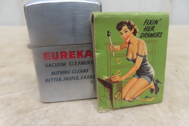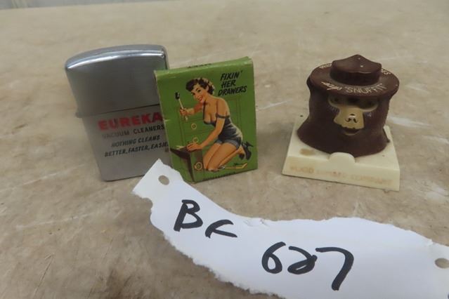 Smoky The Bear Snuffit Zippo Lighter with Eureka Advertising, Vintage Matches with Pin Up Girl