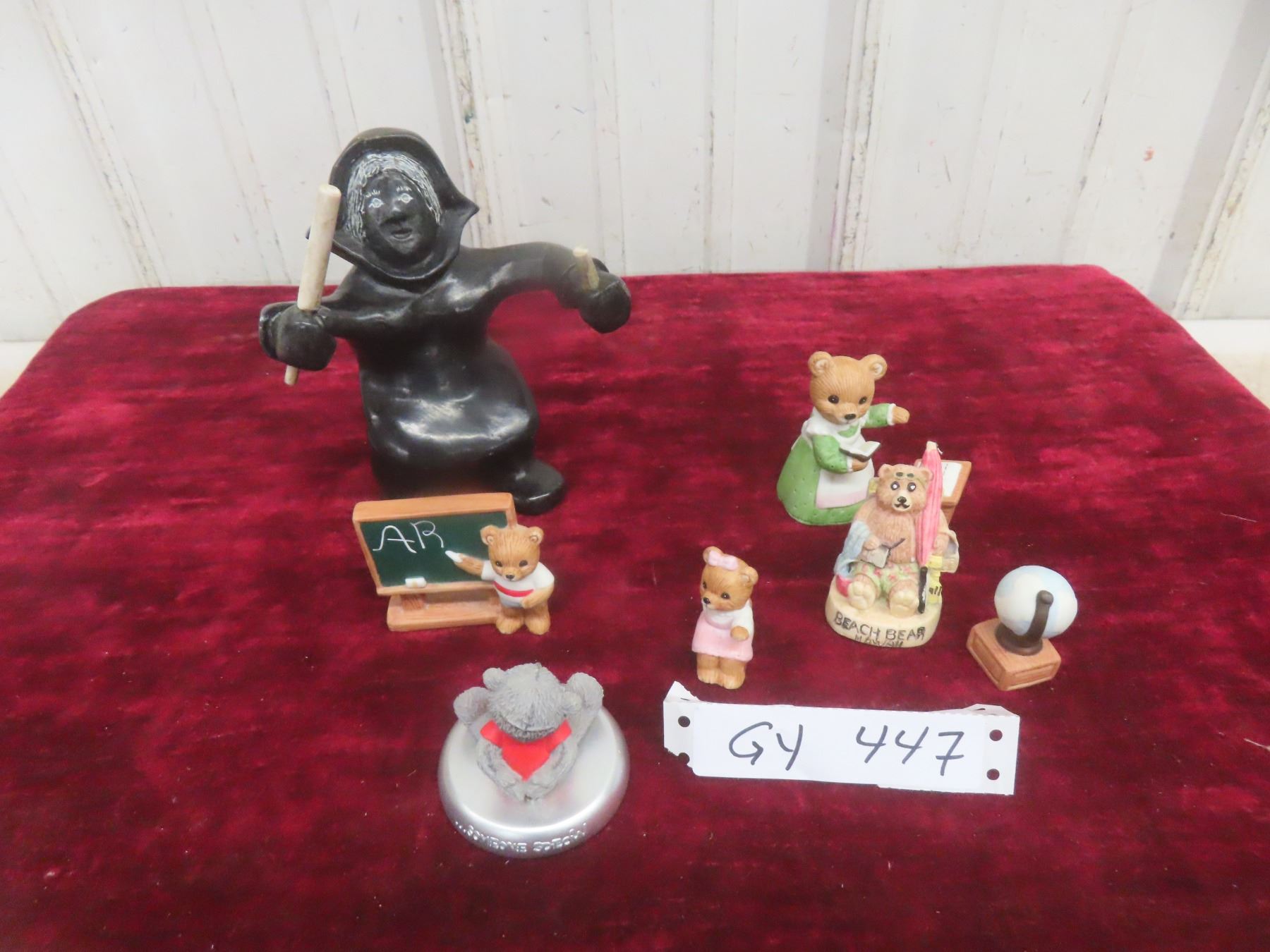 Soapstone Carving Baton (Left Side Broke Off) and China Bear Ornaments