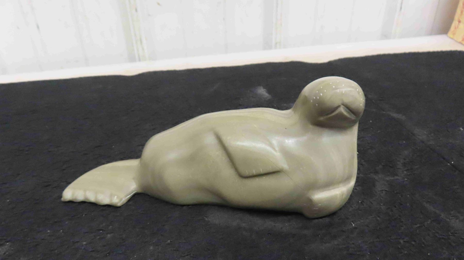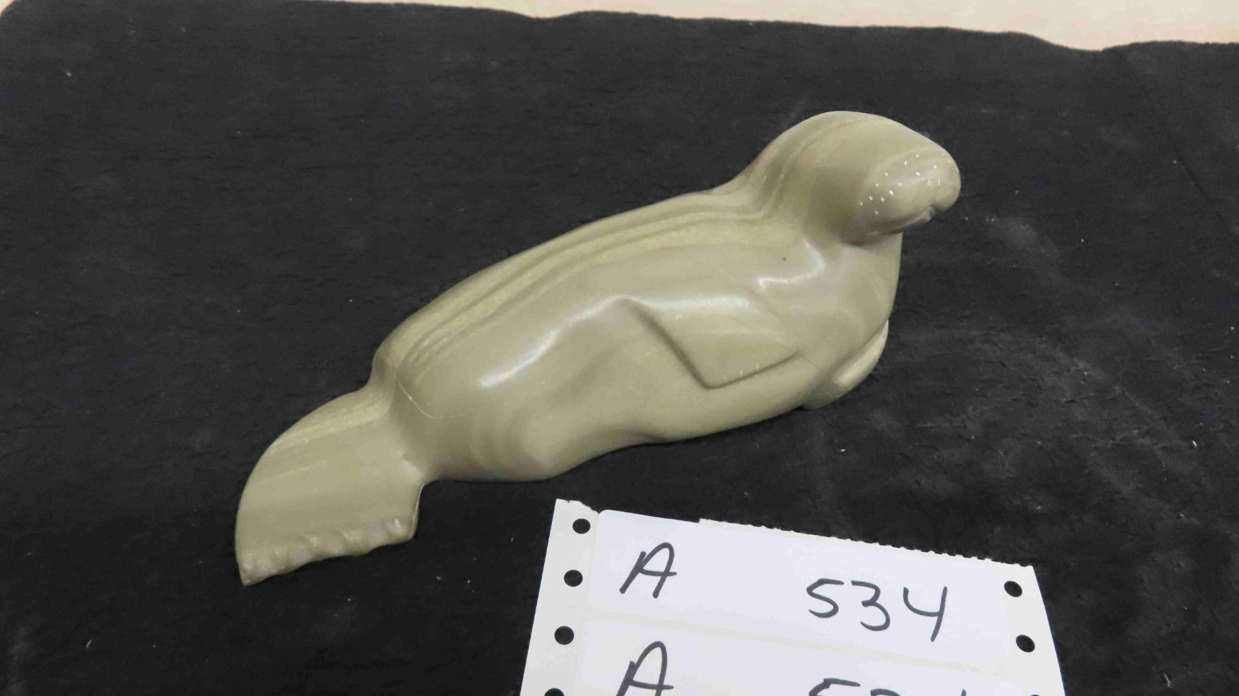 Soapstone Walrus Carving 6'' x 2 1/2'' x 2 3/4''