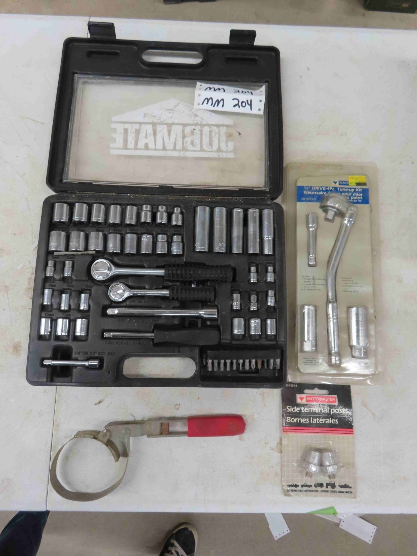 Socket Set + New 4 pc Tune Up Kit, Oil Filter Wrench, New Side Terminal Posts