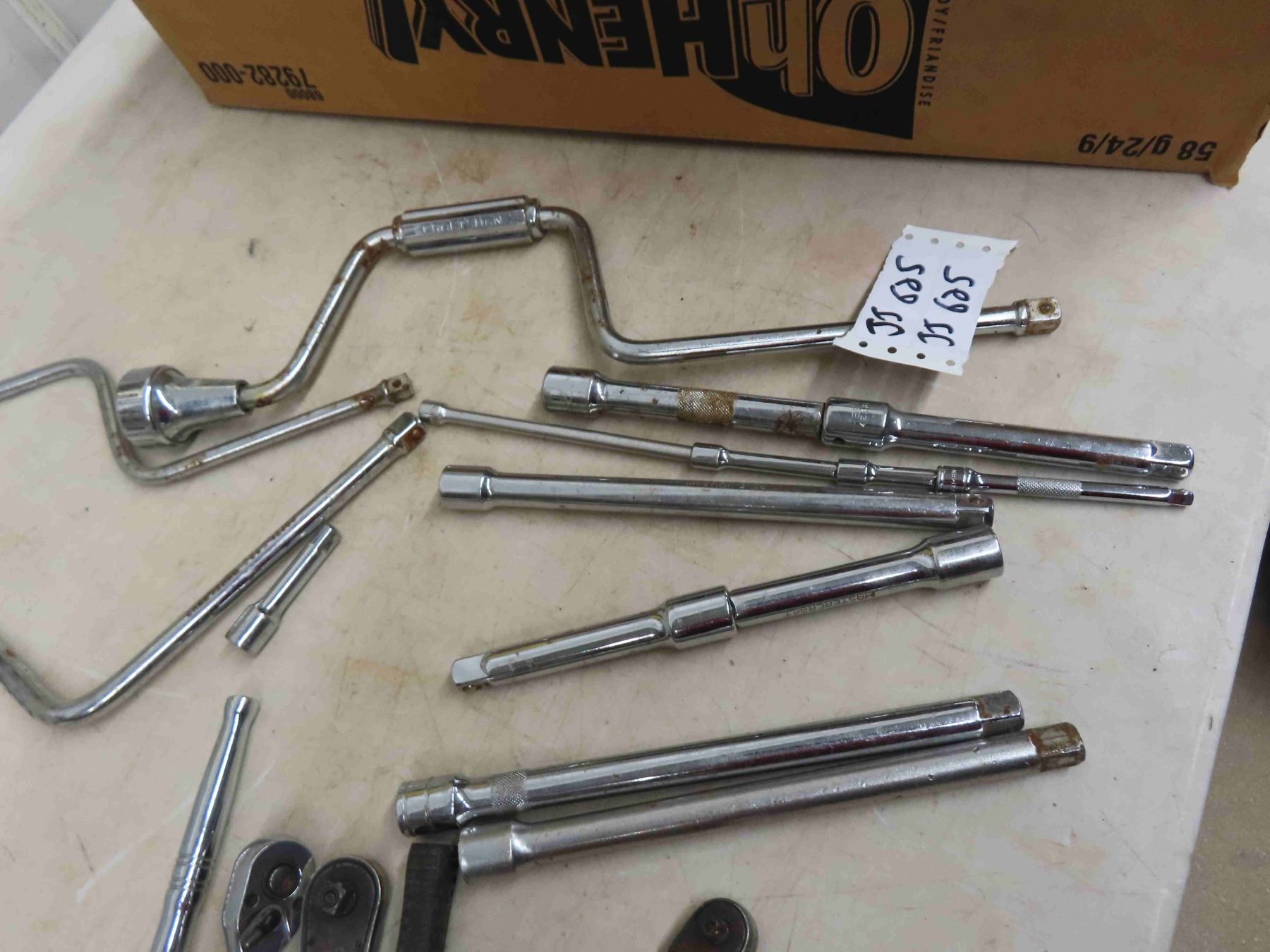 Sockets, Ratchets, Extensions, Speed Bar ; 1/4" + 3/8" + 1/2"