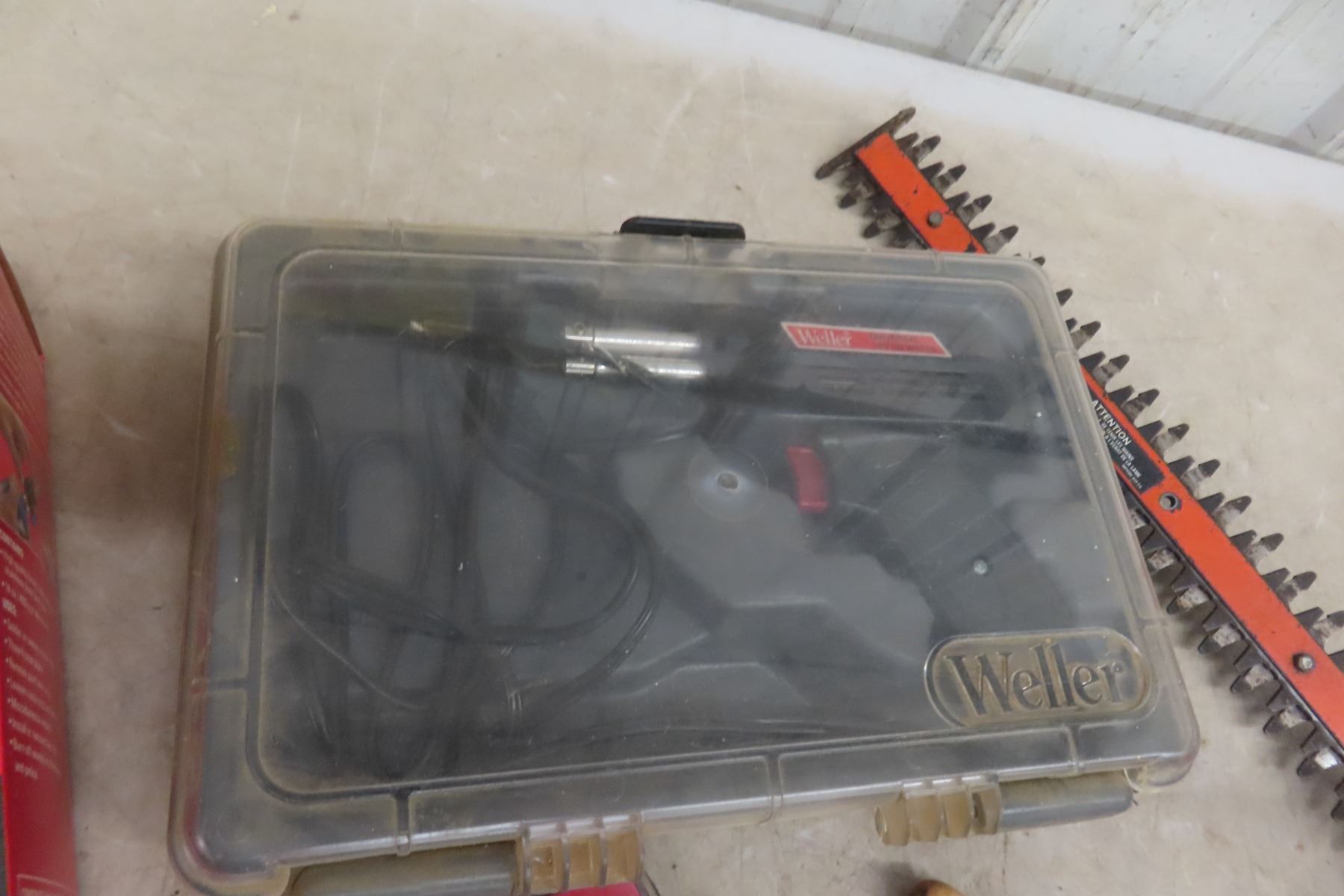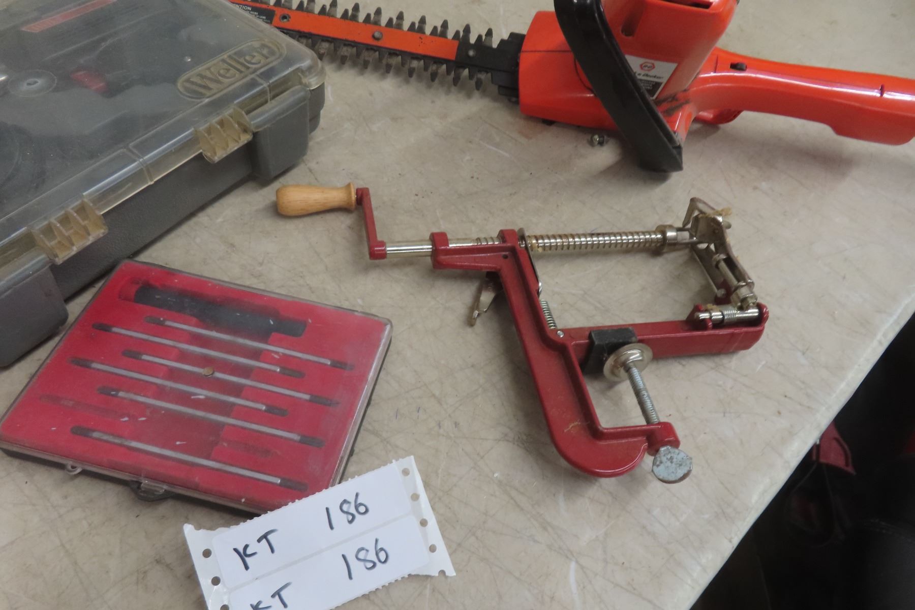 Soda Stream, Propane Torch, Black And Decker Hedge Trimmer, and Apple Peeler