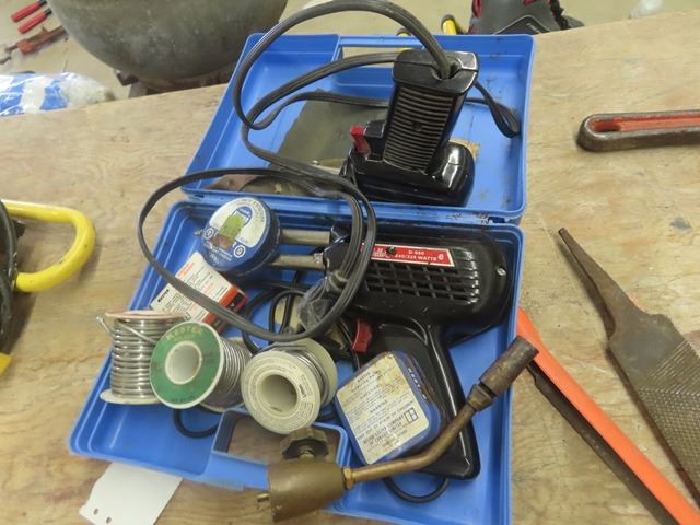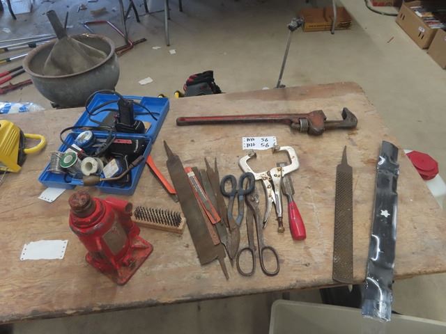 Soldering Gun, Files, Vice Grips, Pipe Wrench, Hydraulic Bottle Jack