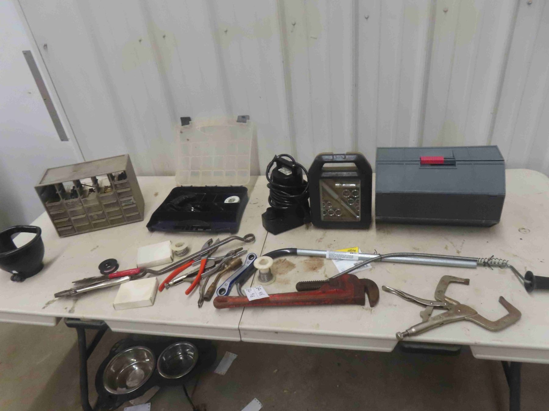 Soldering Gun, Pipe Wrench, Snake Drain Cleaner, Hardware Organizer, Submersible Pump & Socket Set
