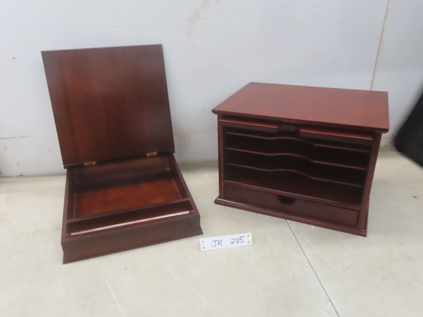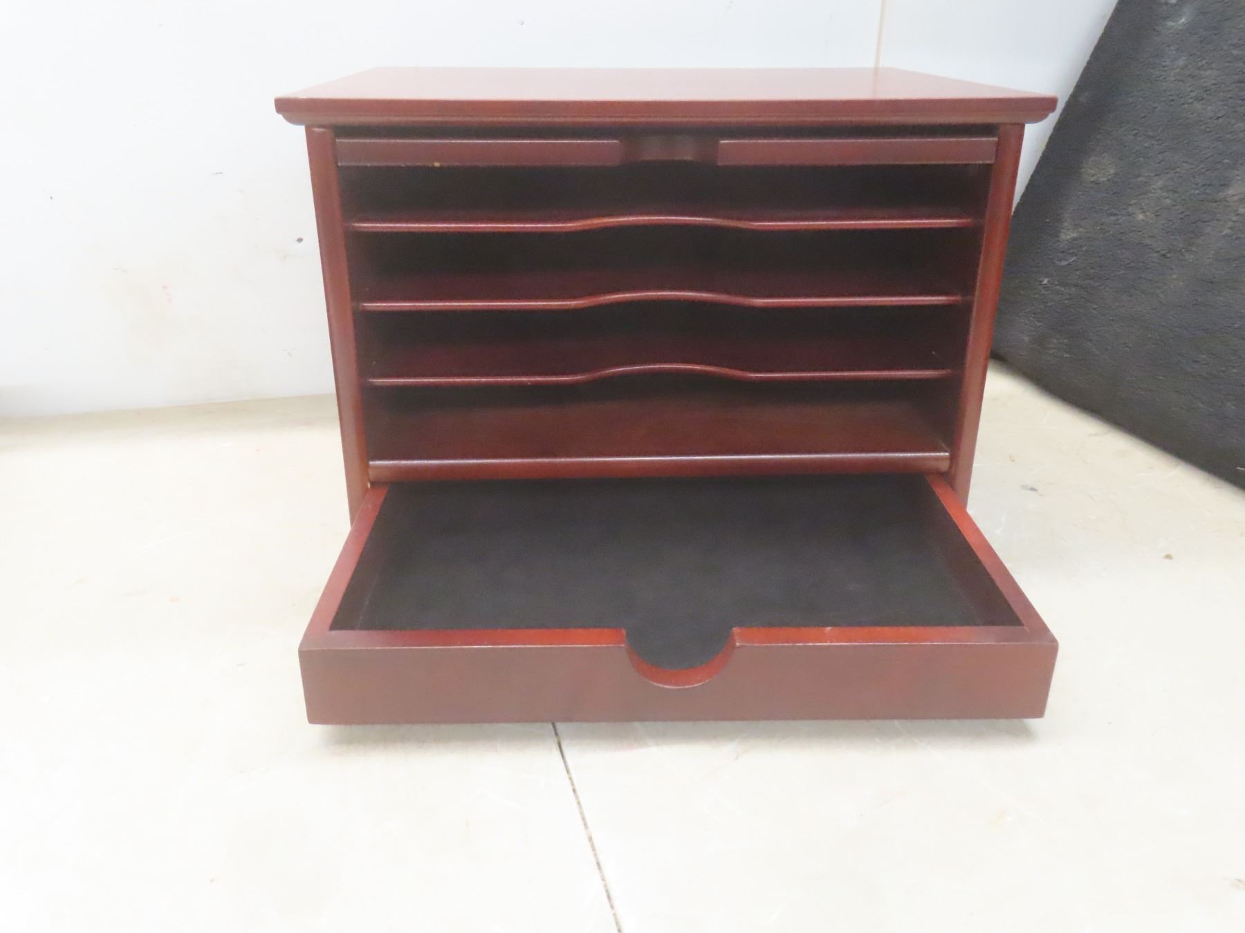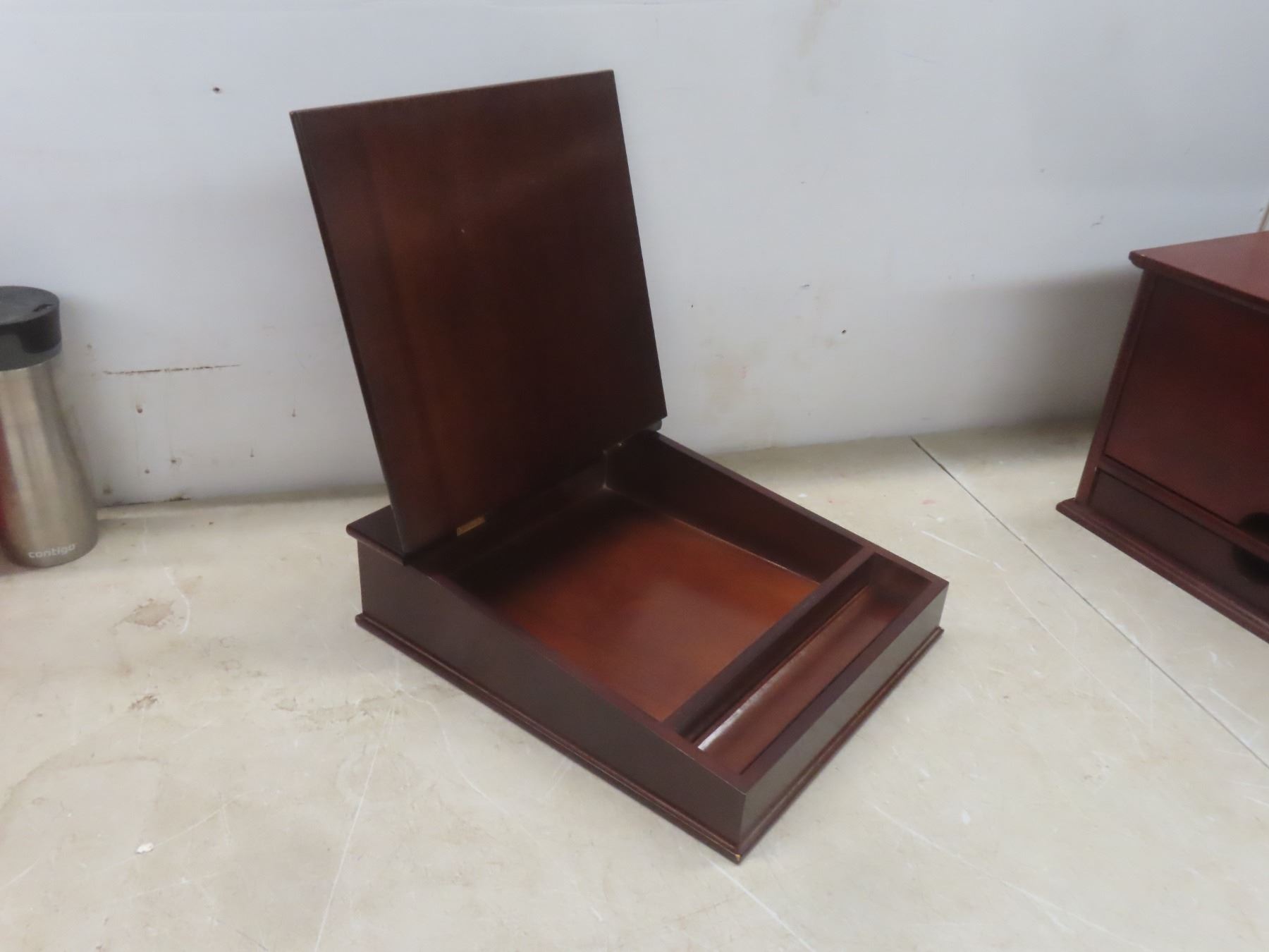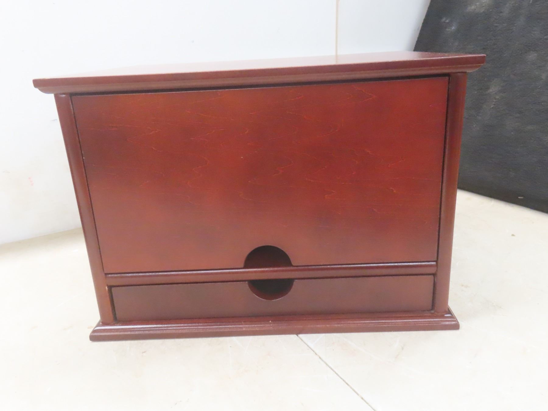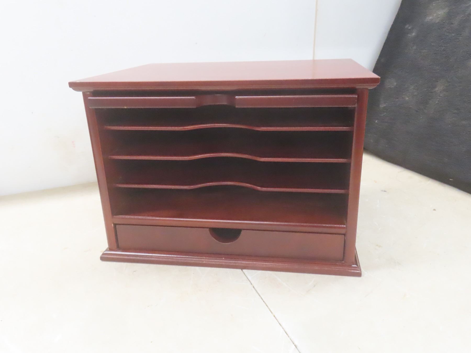 Solid Wood Cherry Finish Table Top Organizer with Shelves + Drawer 9 1/2"x11"x14" + Writing Organizer with Storage
