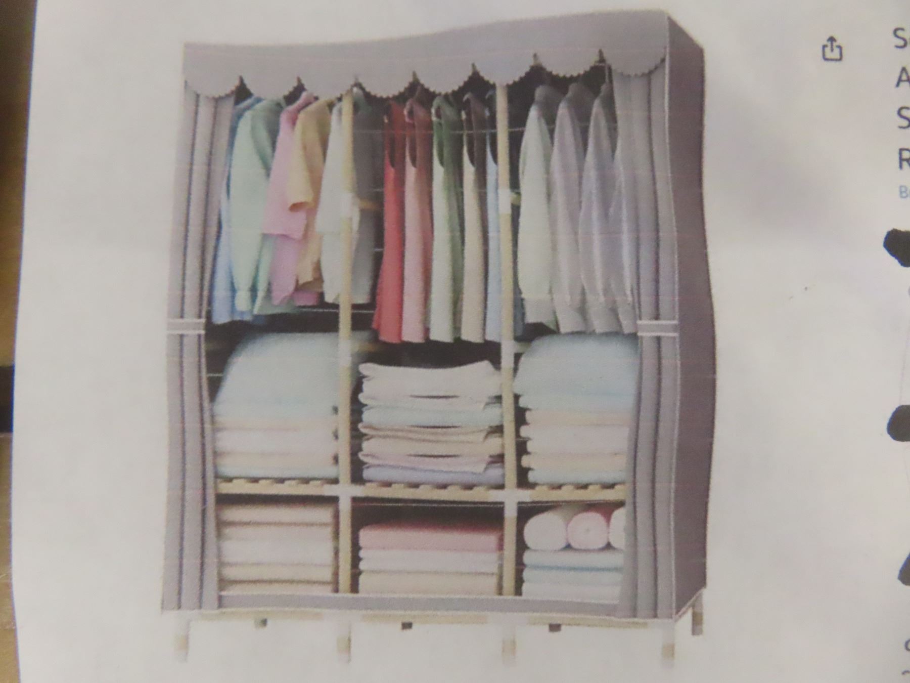 Solid Wood Folding Wardrobe Doors, Portable Assembly Canvas Effect. Wardrobe Simplicity Solid Color Fabric Cloths Storage Rack. 126cmX170cmX45cm. New or Store return