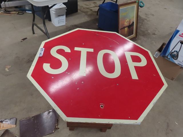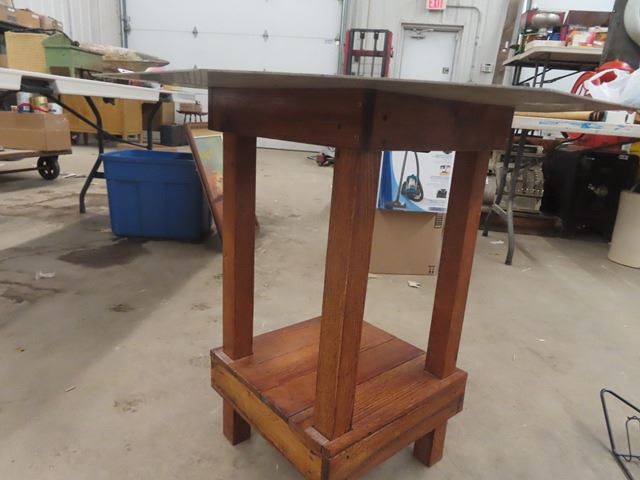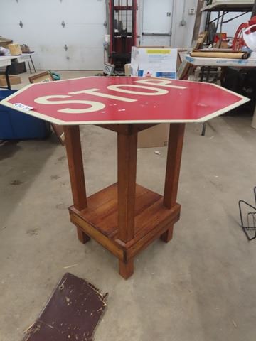 Solid Wood & Metal Stop Sign Card Table 28" High 30" Round