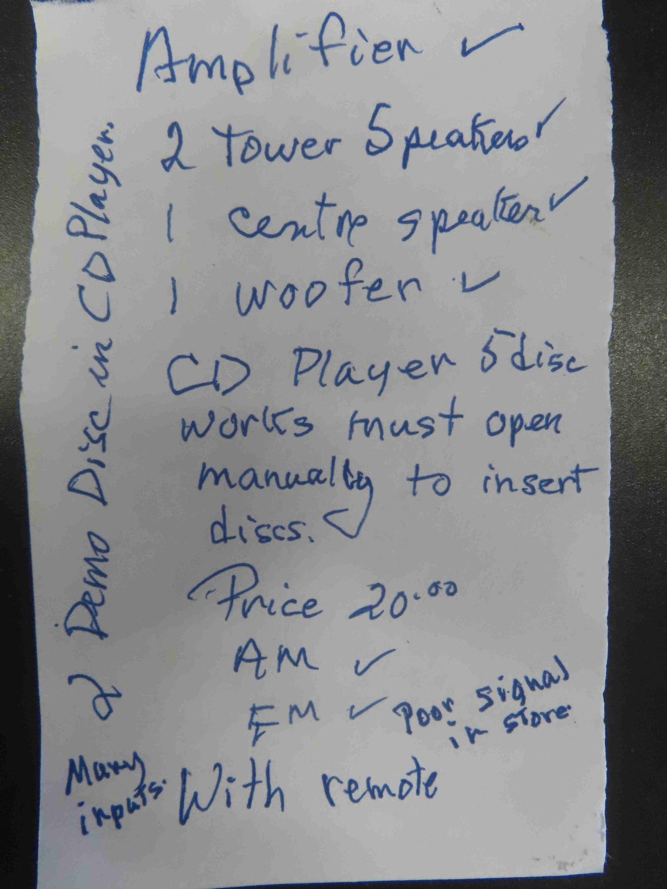 Sont Amplifier, 2 Tower Speakers, Center, Woofer, CD Plater, AM/FM with Remote