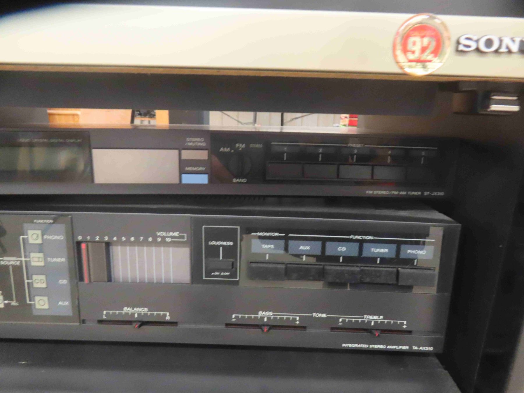 Sony Stereo System : Sony Cassette Deck TC-FX420R, Sony Integrated Stereo Amp TA-AX310, Sony FM Stereo AM/FM Turner ST-JX310, Sony Direct Drive Auto Stereo Turn Table System PS-LX310 , Speakers & Cabinet