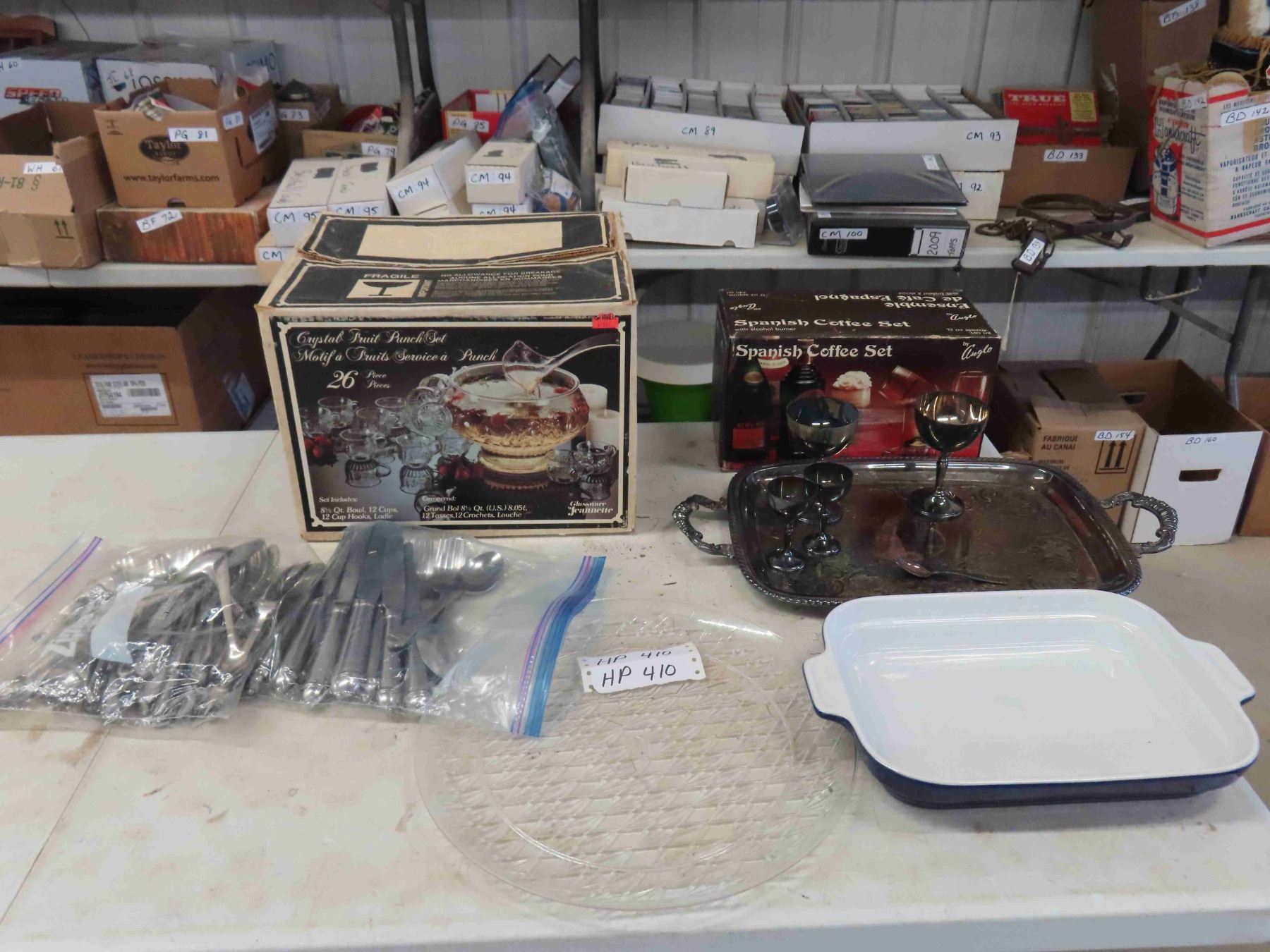 Spanish Coffee Set, Glass Punch Bowl Set, Silverware + 25th Anniversary Silver