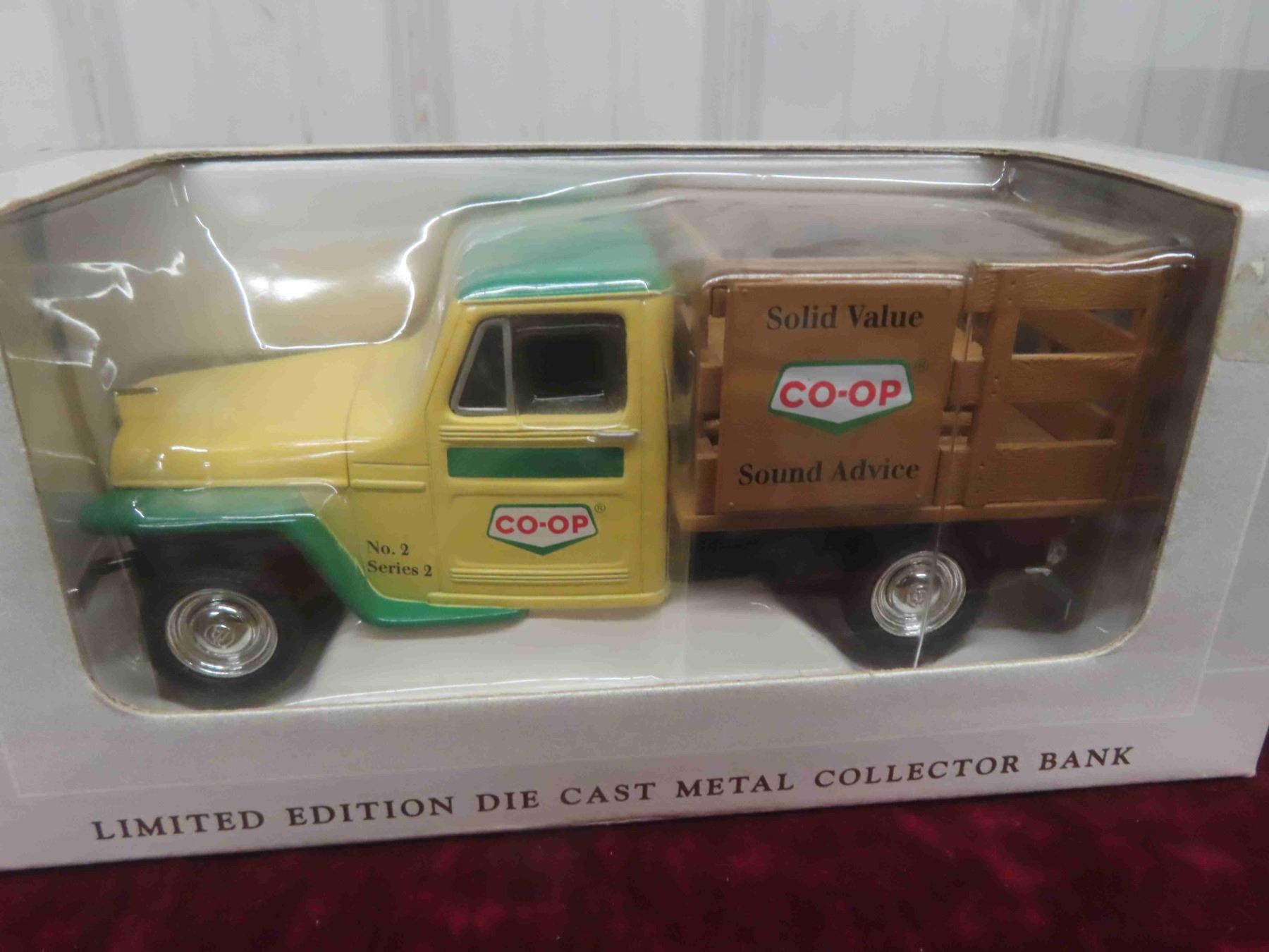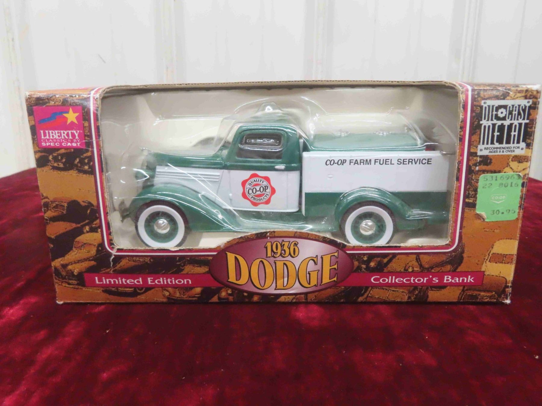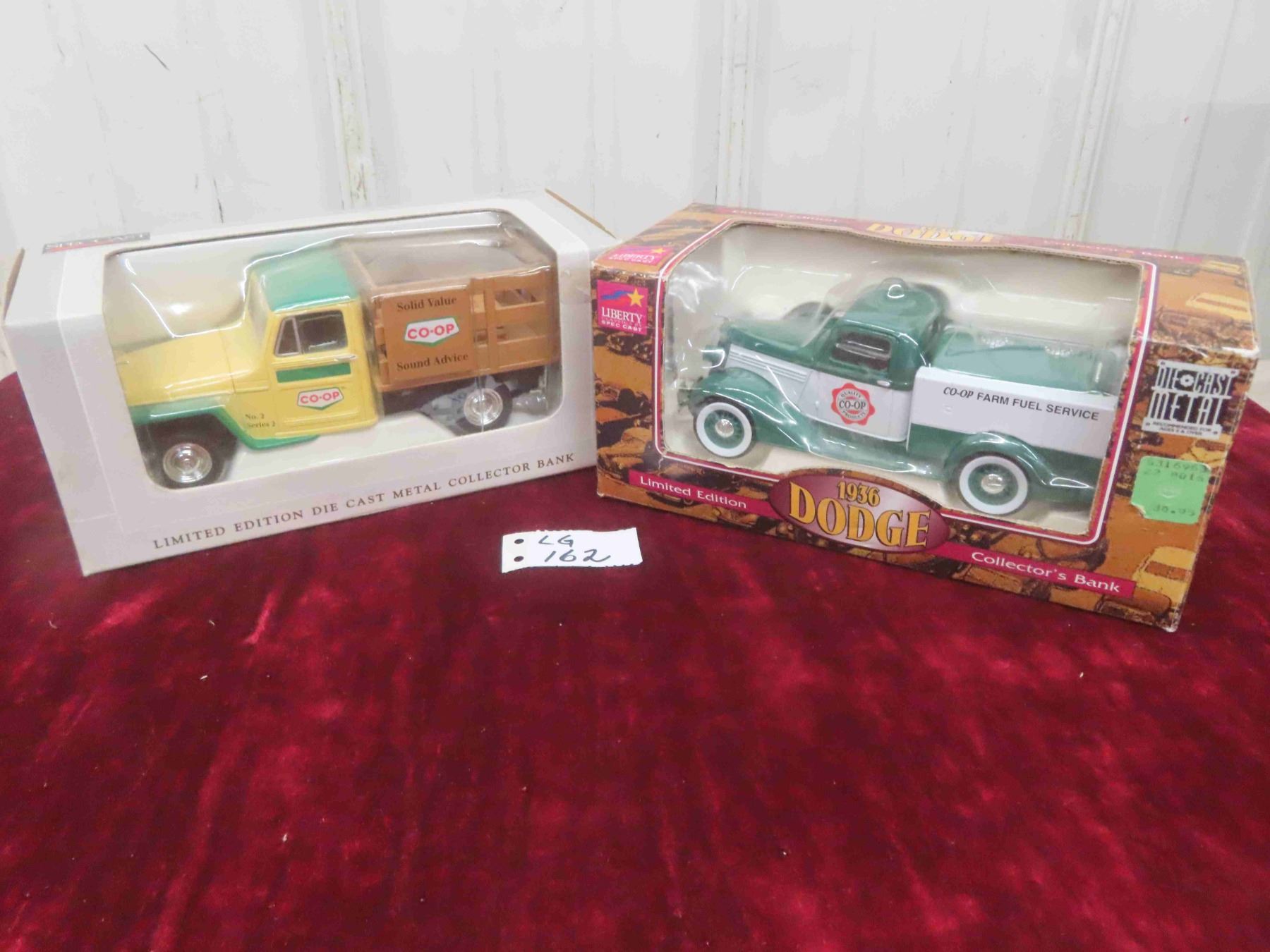 Spec Cast Diecast Metal Collector Banks : 1953 Willys , Liberty 1936 Dodge with Co Op Advertising