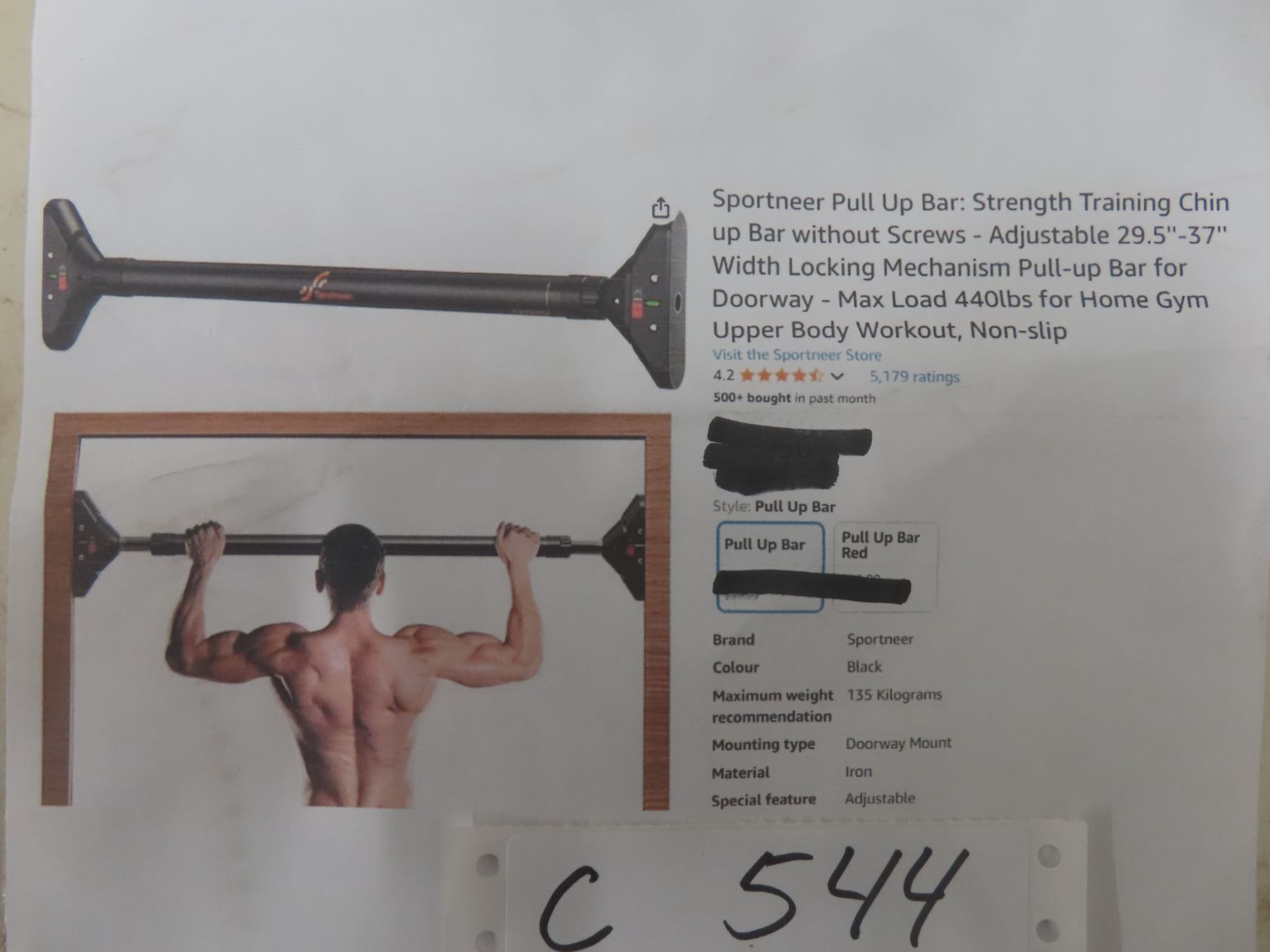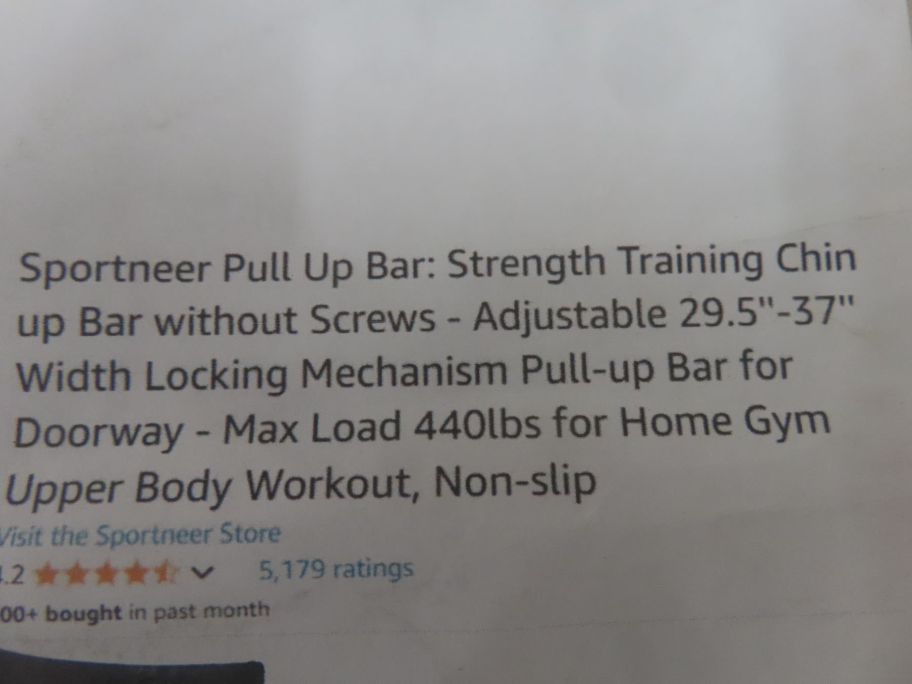 Sportneer Pull Up Bar: Strength Training Chin up Bar Without Screws - Adjustable 29.5''-37'' Width Locking Mechanism Pull-up Bar for Doorway - Max Load 440lbs for Home Gym Upper Body Workout, Non-Slip