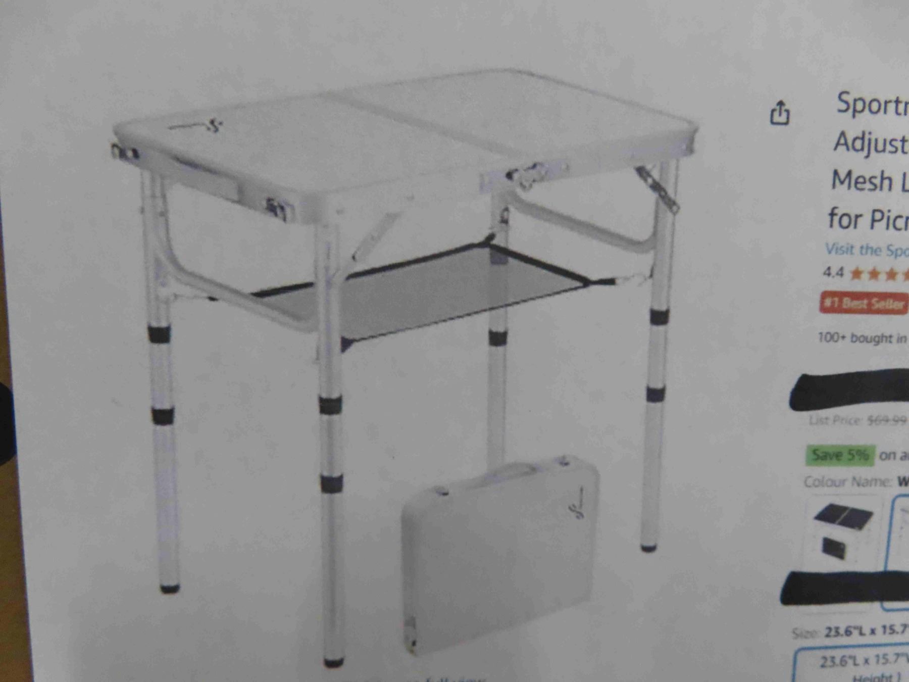 Sportneer Small Folding Table 2ft, 3 Adjustable Height Folding Camping Table with Mesh Layer Portable Folding Camping Tables for Picnic Beach BBQ NEW OR STORE RETURN