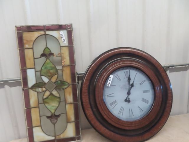 Stained Glass 16" x 36" & Large Clock 29" Wide