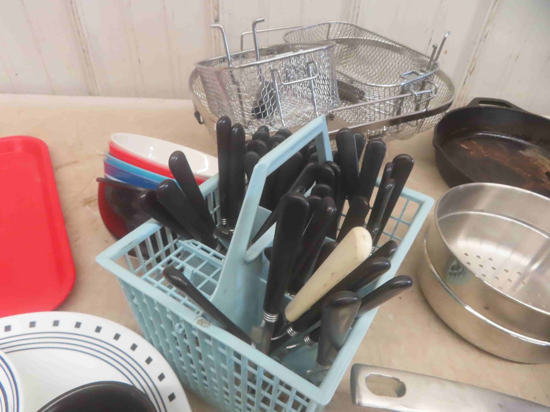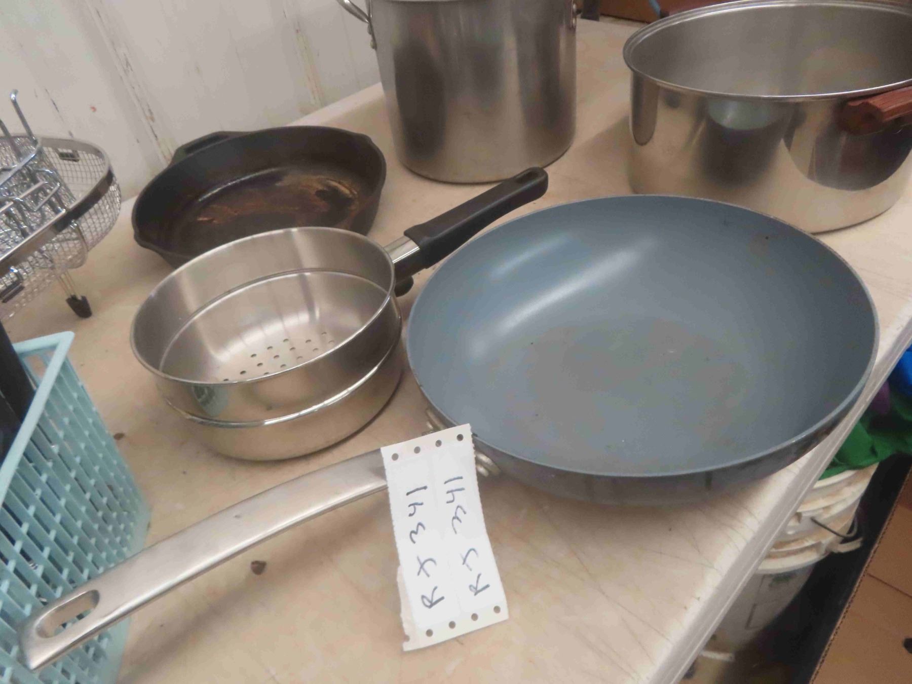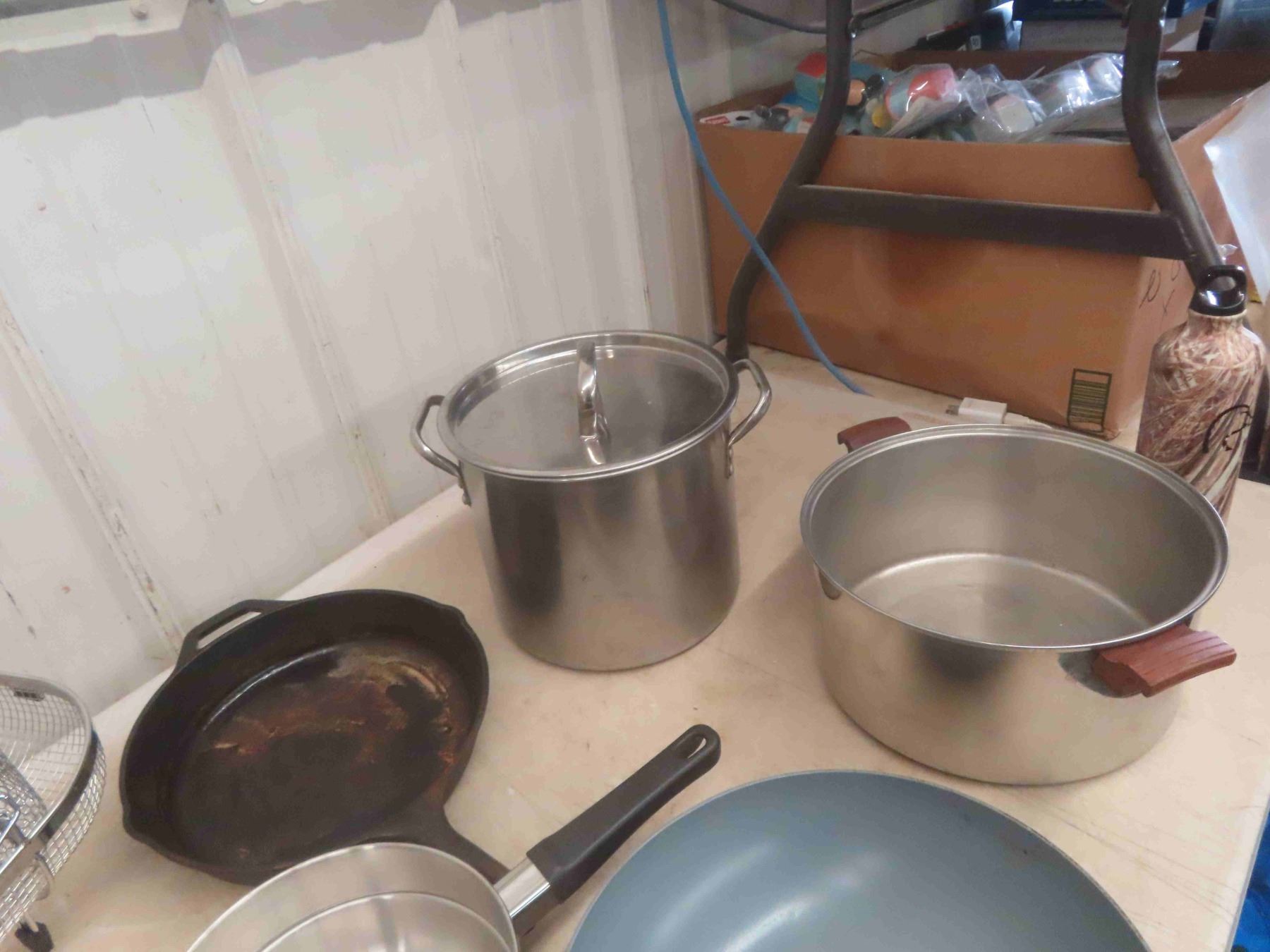 Stainless Pot with Lid, Cast Frying Pan, Knives, Plus