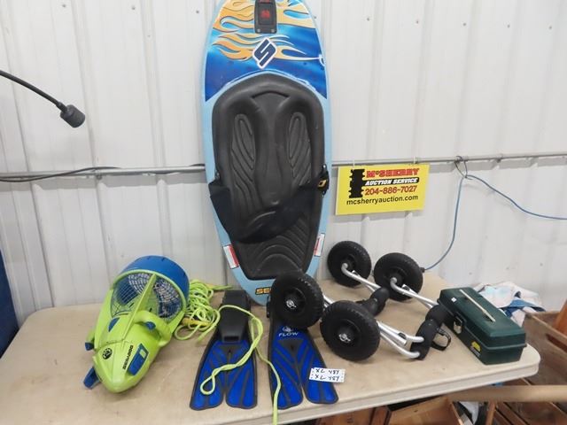 Stand Up Wake Board, Flippers, Canoe Dolly, Tackle Box, Plus More!