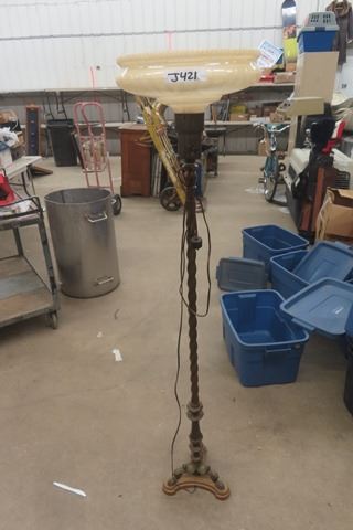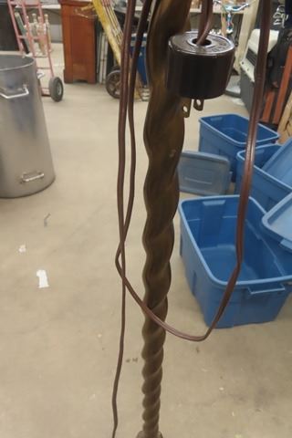 Standing Floor Lamp with Twisted Brass Stem - Shade is Damaged