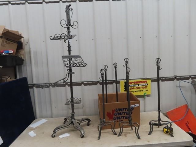 Stands - Wrought Iron , 6 Adjustable Height 1 Rolling w Shelves & Comic Stand