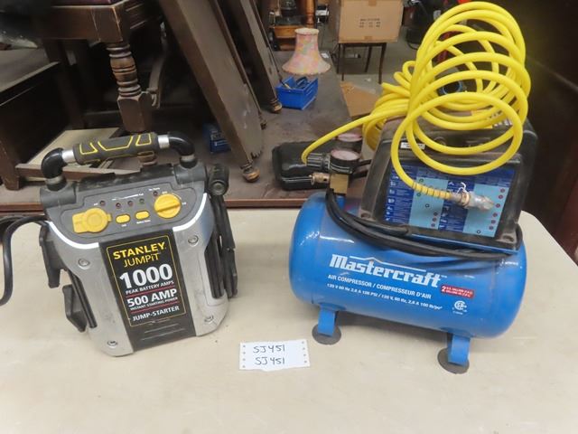 Stanley 1000 Amp Portable Booster , Mastercraft 2 Gal Portable Air Compressor - Untested