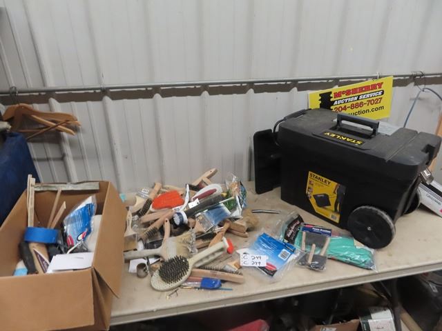 Stanley Tool Box w Wheels , Painting Supply Wire Brushes, & Paint Brushes