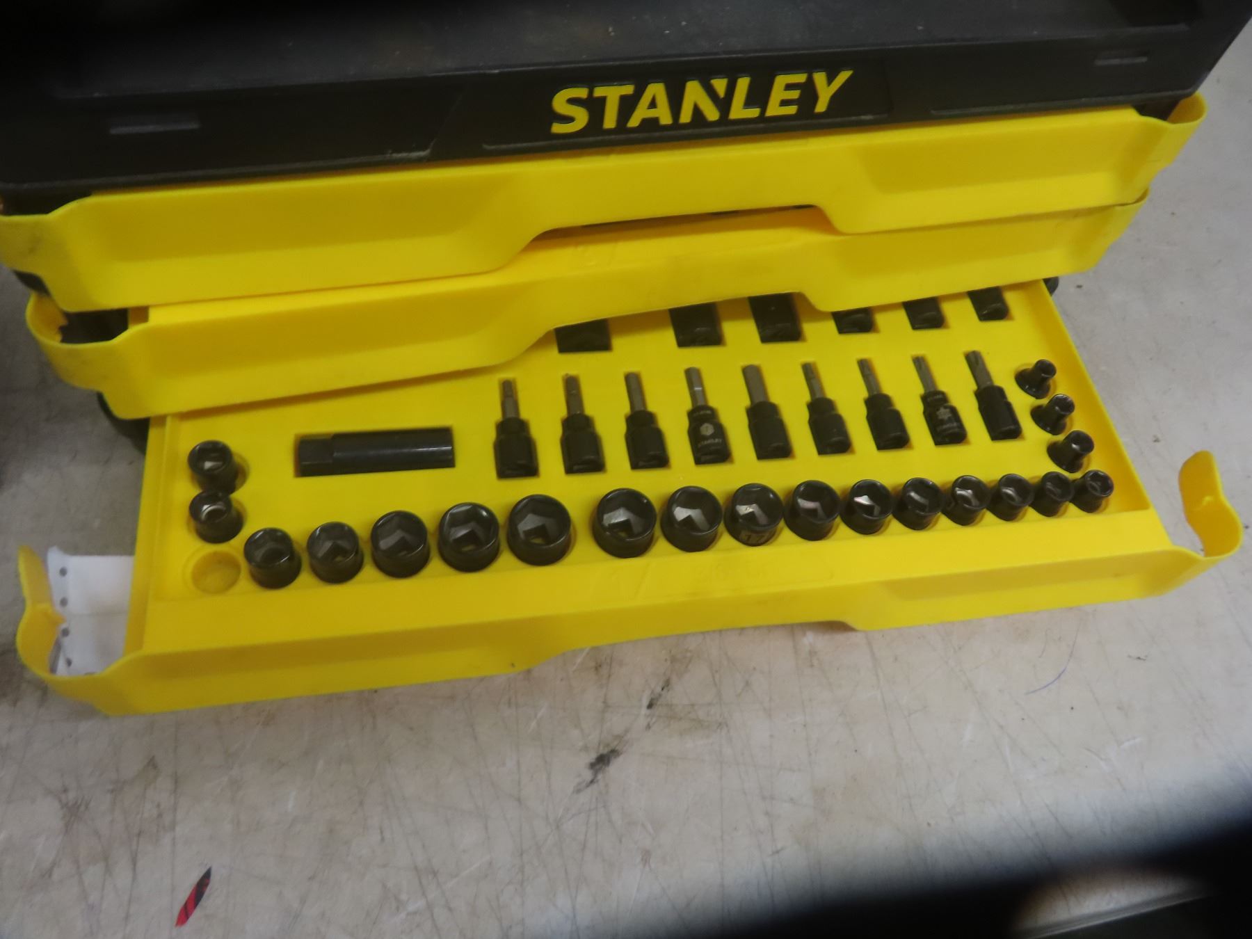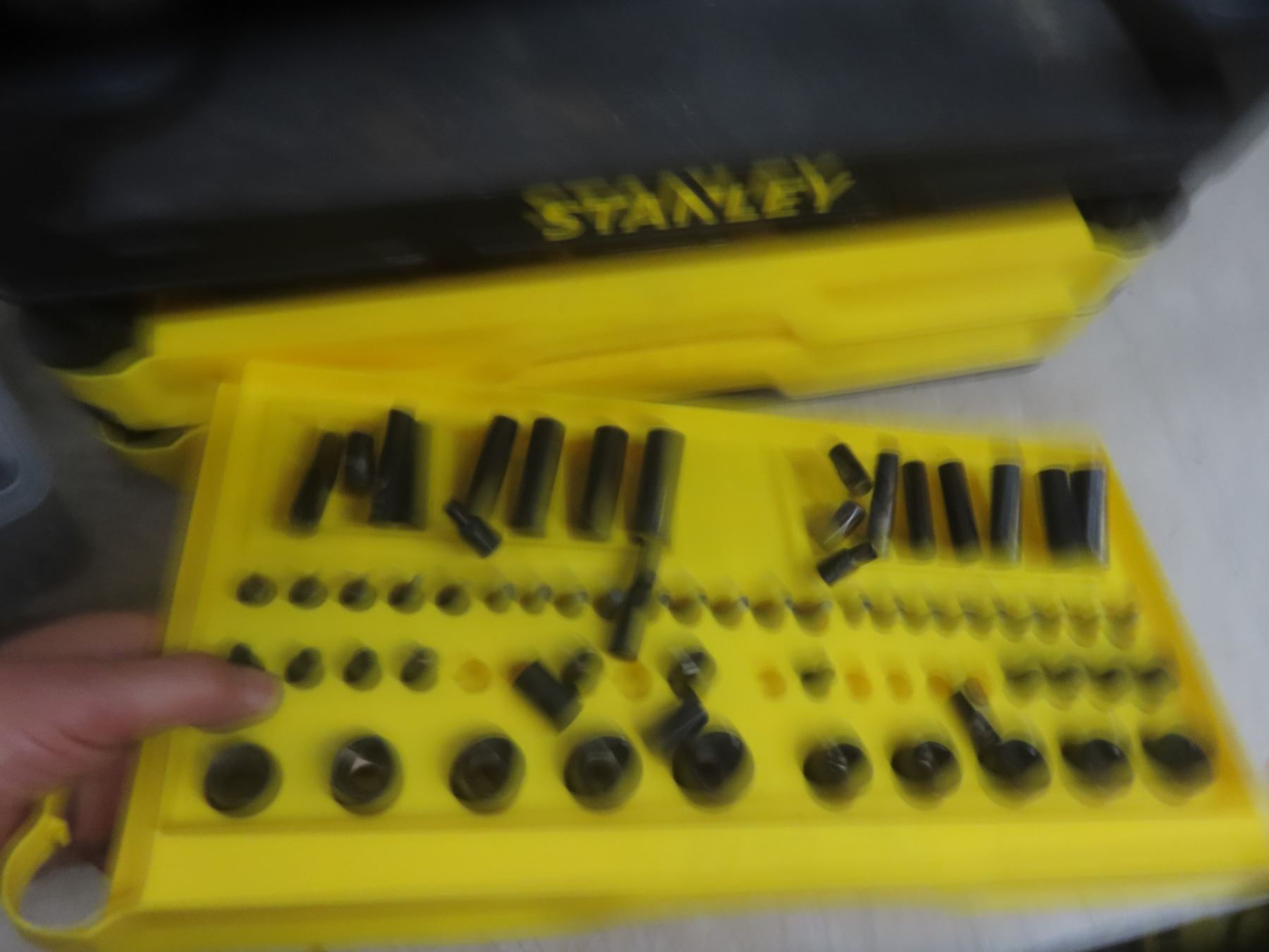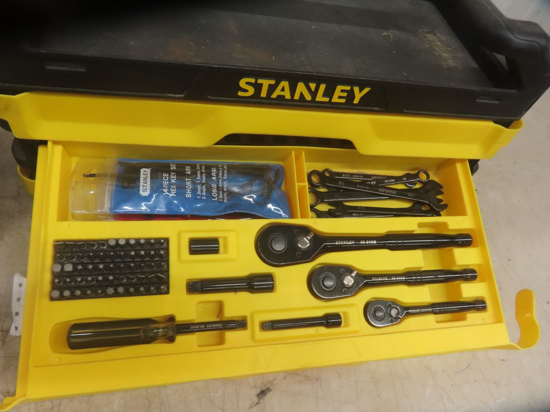 Stanley Tool Box with Socket Set + Wrenches Plus Metal Tool Box with Hardware, Screws + Nails