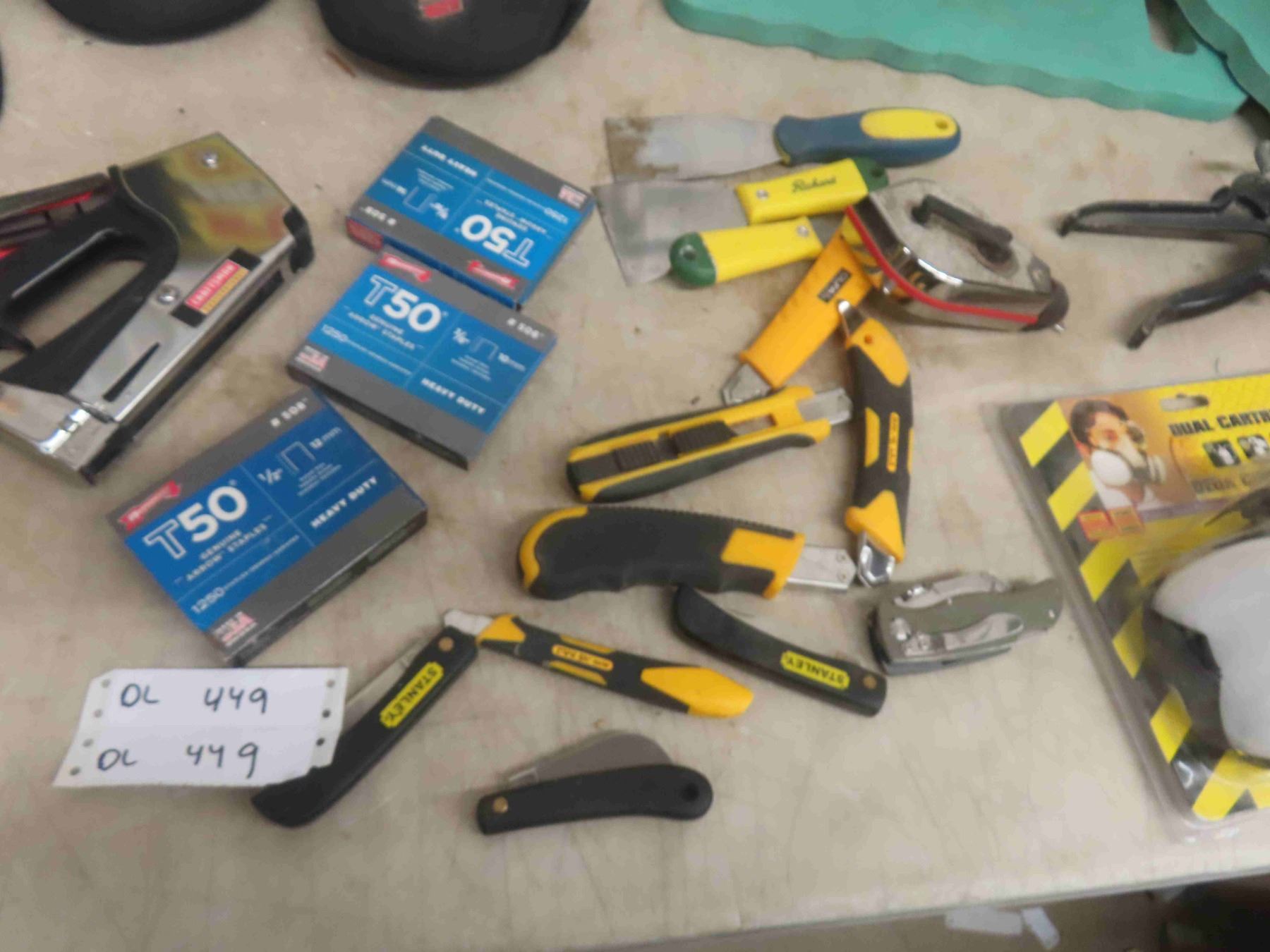 Stapler + Staples, New Respirator, Scrapers, Utility Knife, Caulking Gun, Tape Measure