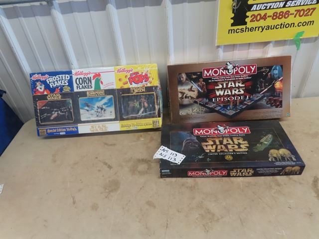 Star Wars - 2 Monopoly & Kelloggs Cereal w Seal Star Wars Movie Theater Banner
