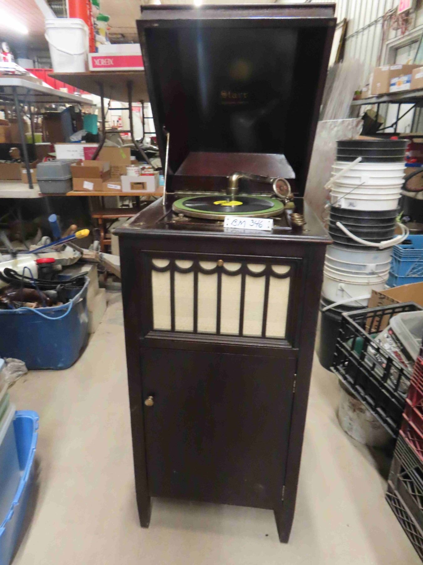 Starr Gramophone - Antique 19" x 22" x 43"  In Cabinet with Record Holder