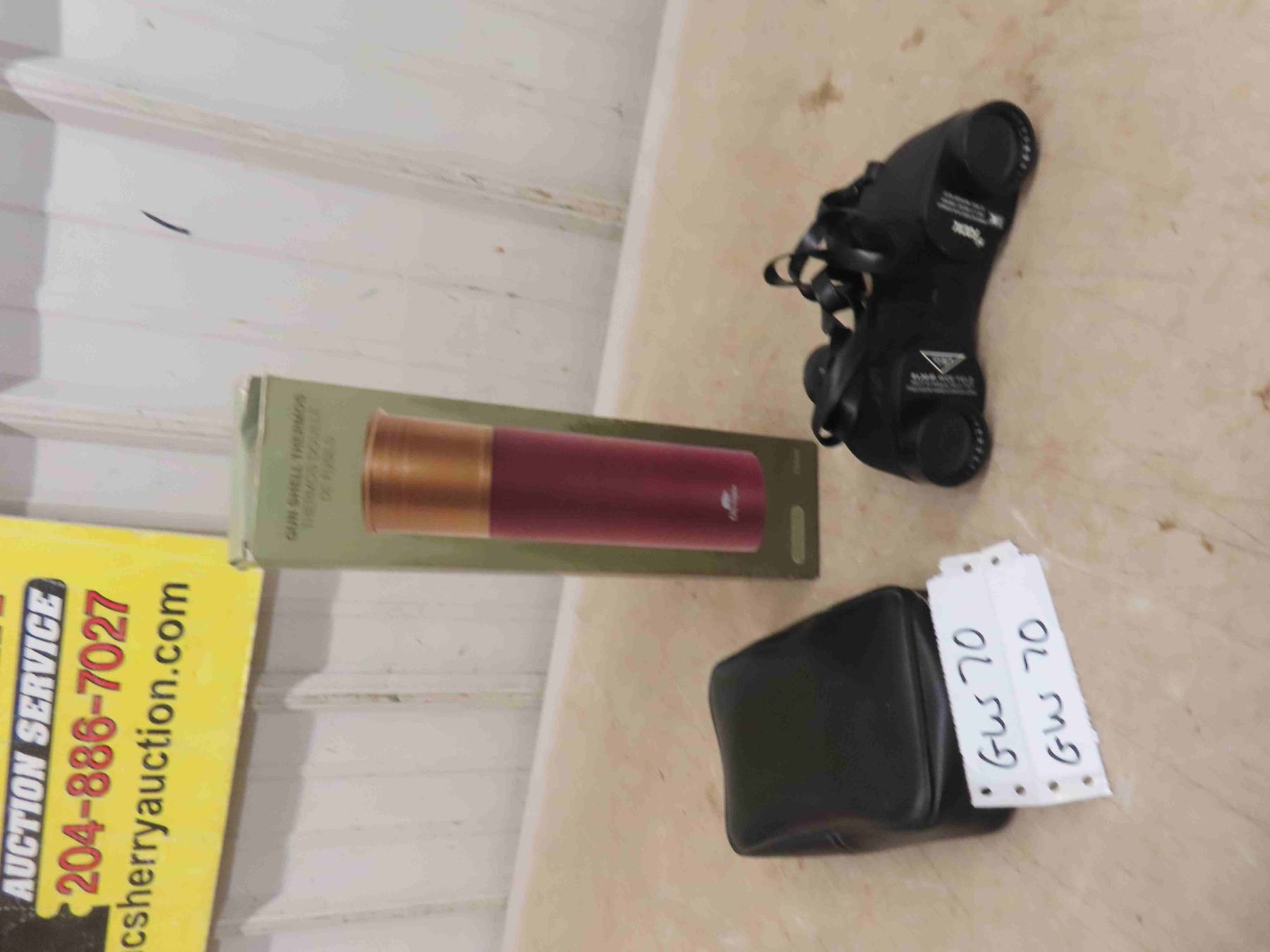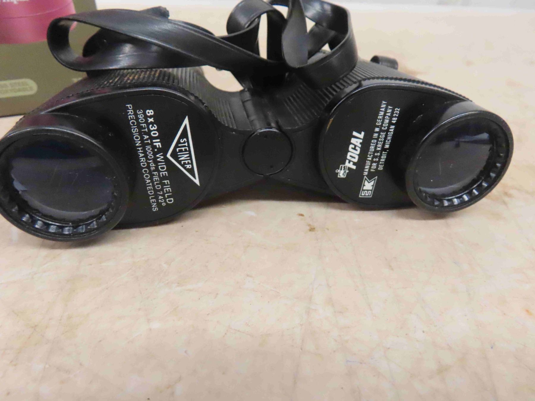 Steiner 8x30 Binoculars in Case , Olympia Thermos Shaped Like Shotgun Shell