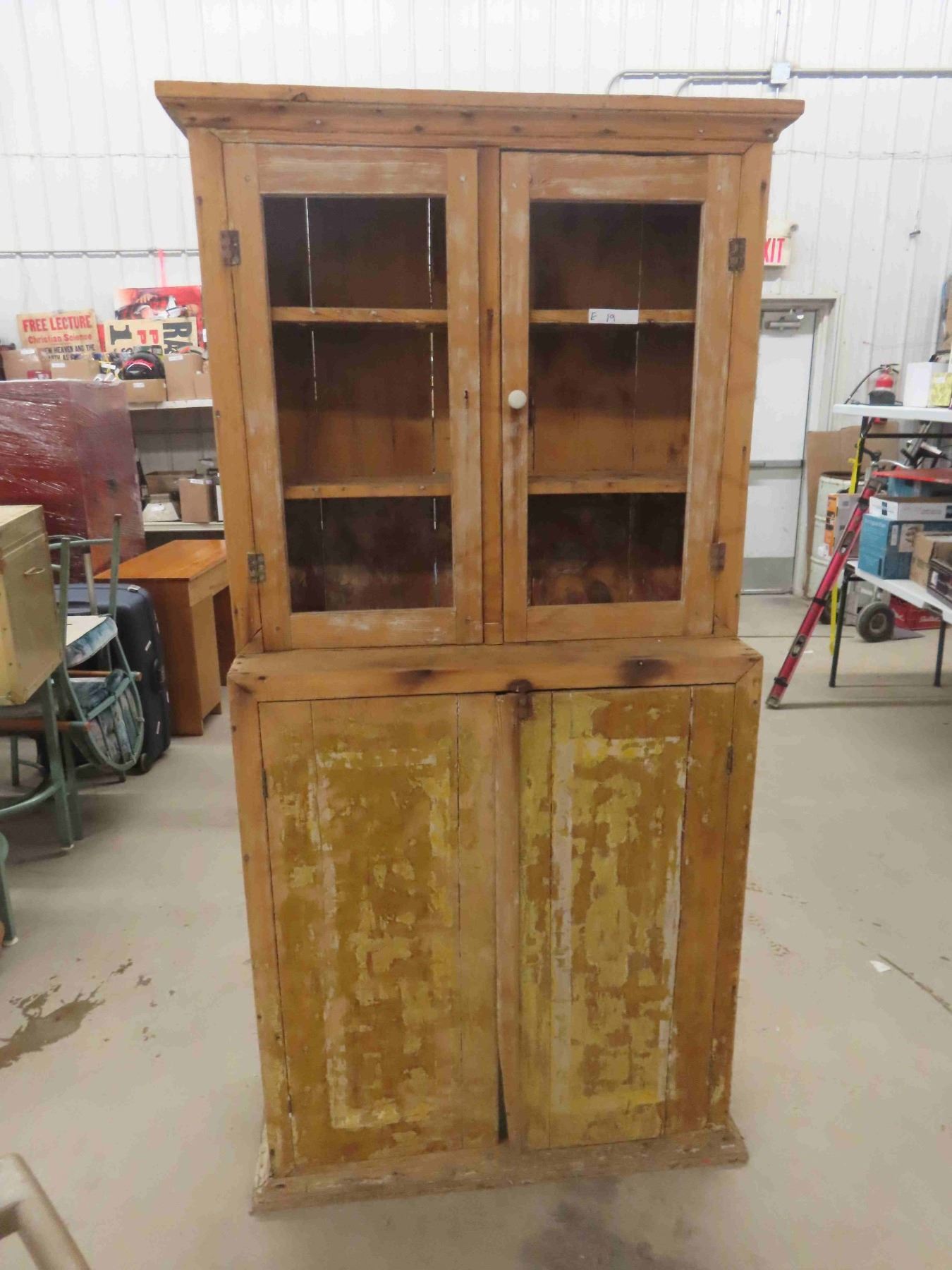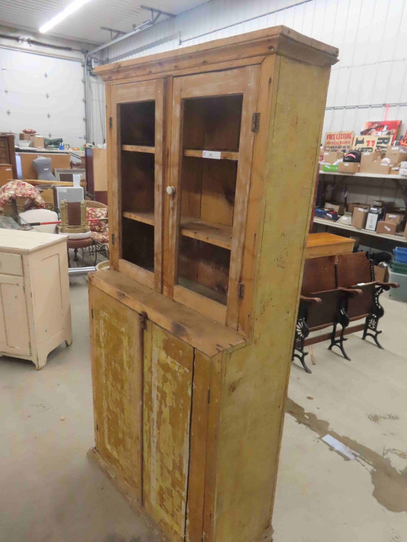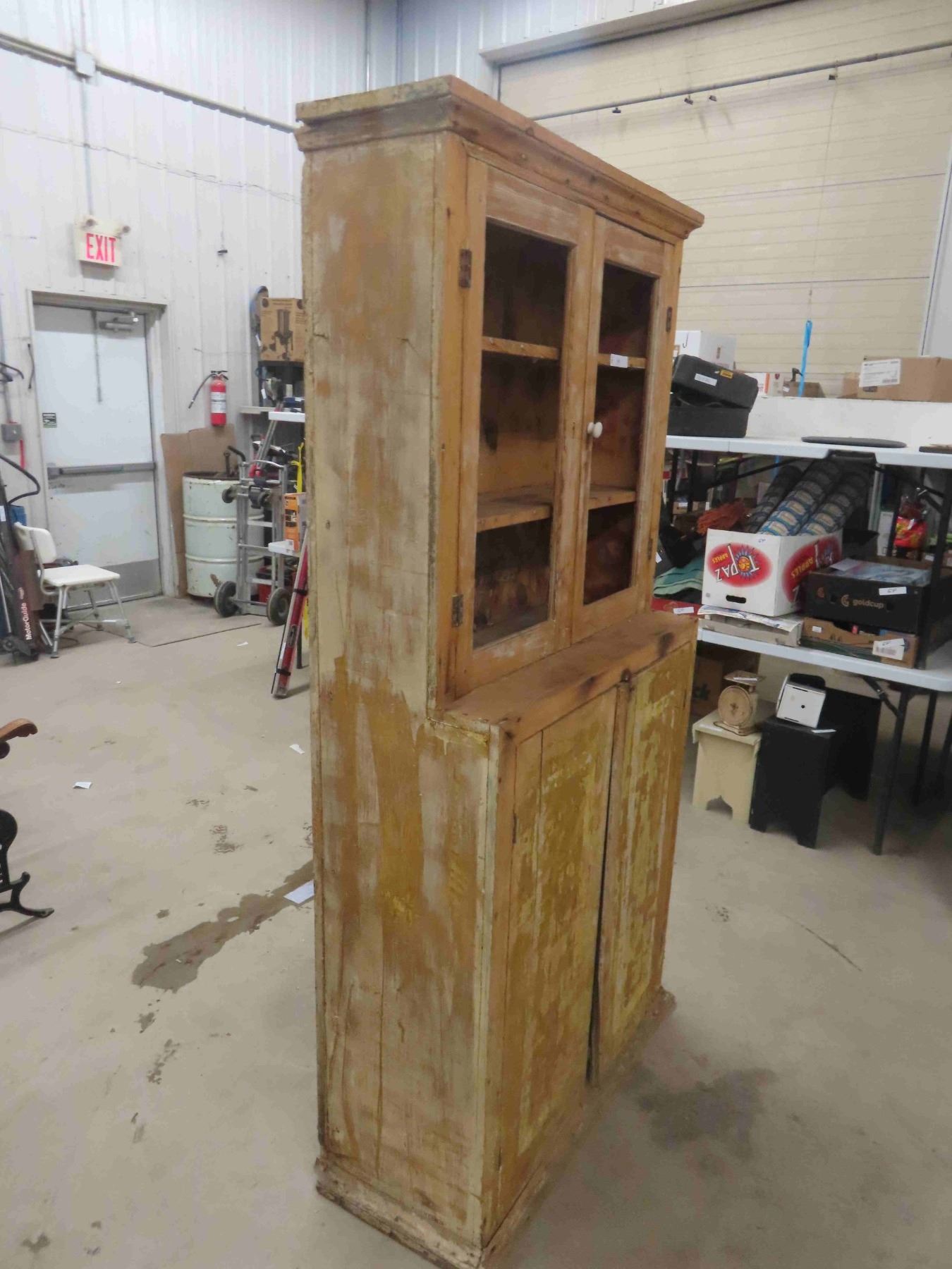 Step Back Kitchen Cupboard Original Paint and Stripped Late 1800s 80'' x 37 1/2'' x 16''