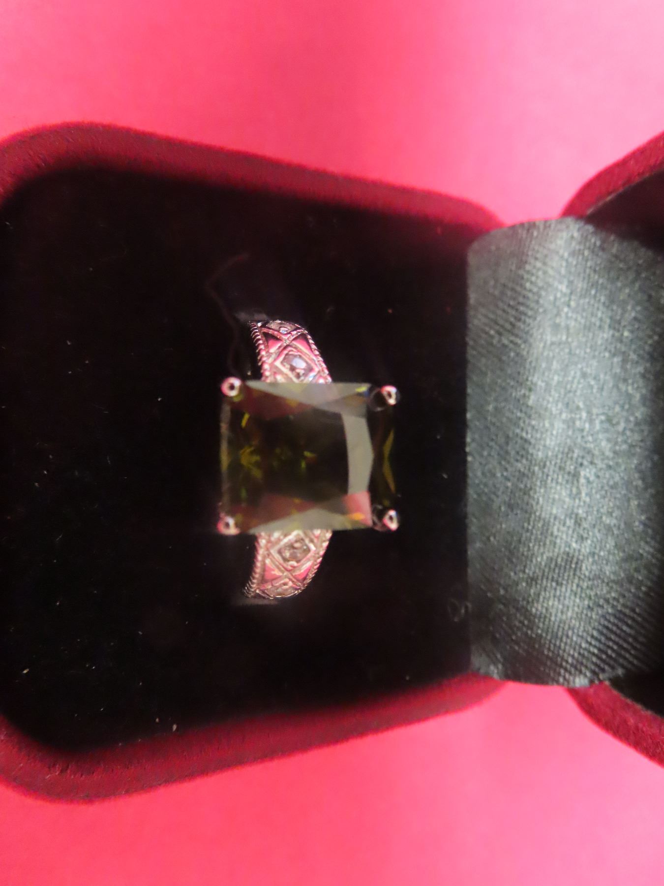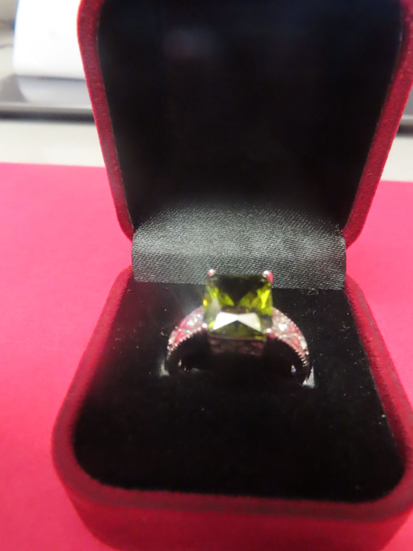 Sterling SIlver Ring w Green Stone & Crystals Size 8