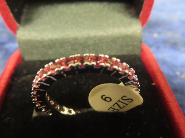 Sterling Silver Anniversary Style Band Ring w Pink Stones Sz 9