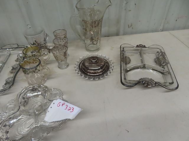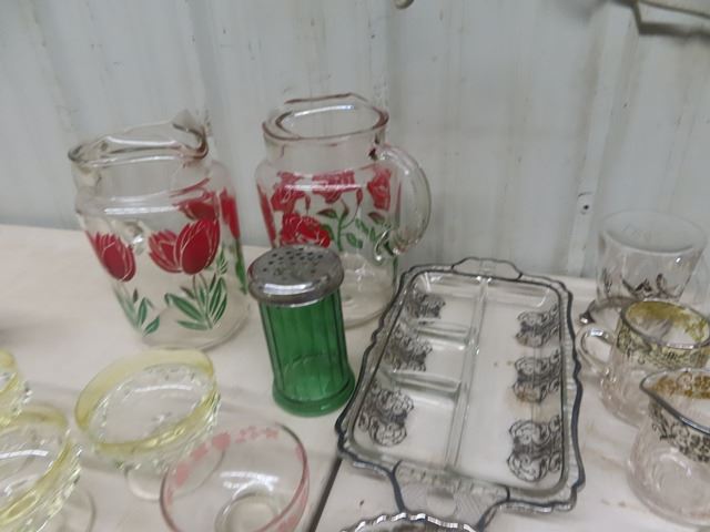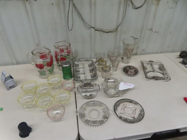 Sterling Silver Serving Items , Glassware Pitchers Depression Sugar Shaker