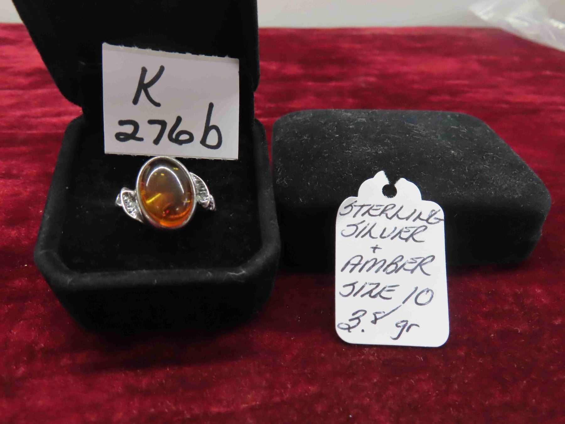Sterling Silver and Amber Ring Size 10 Total Weight 3.8 Grams