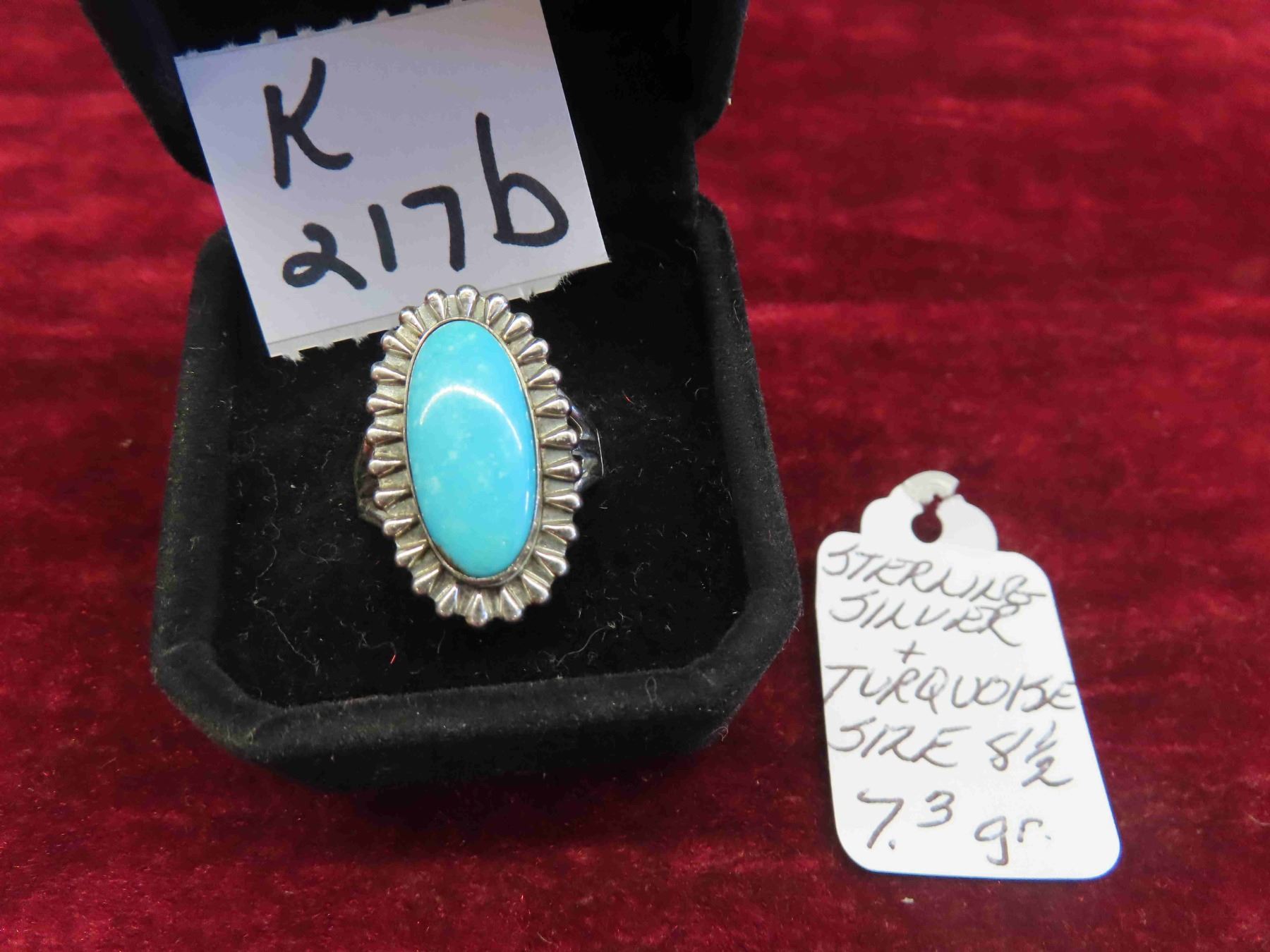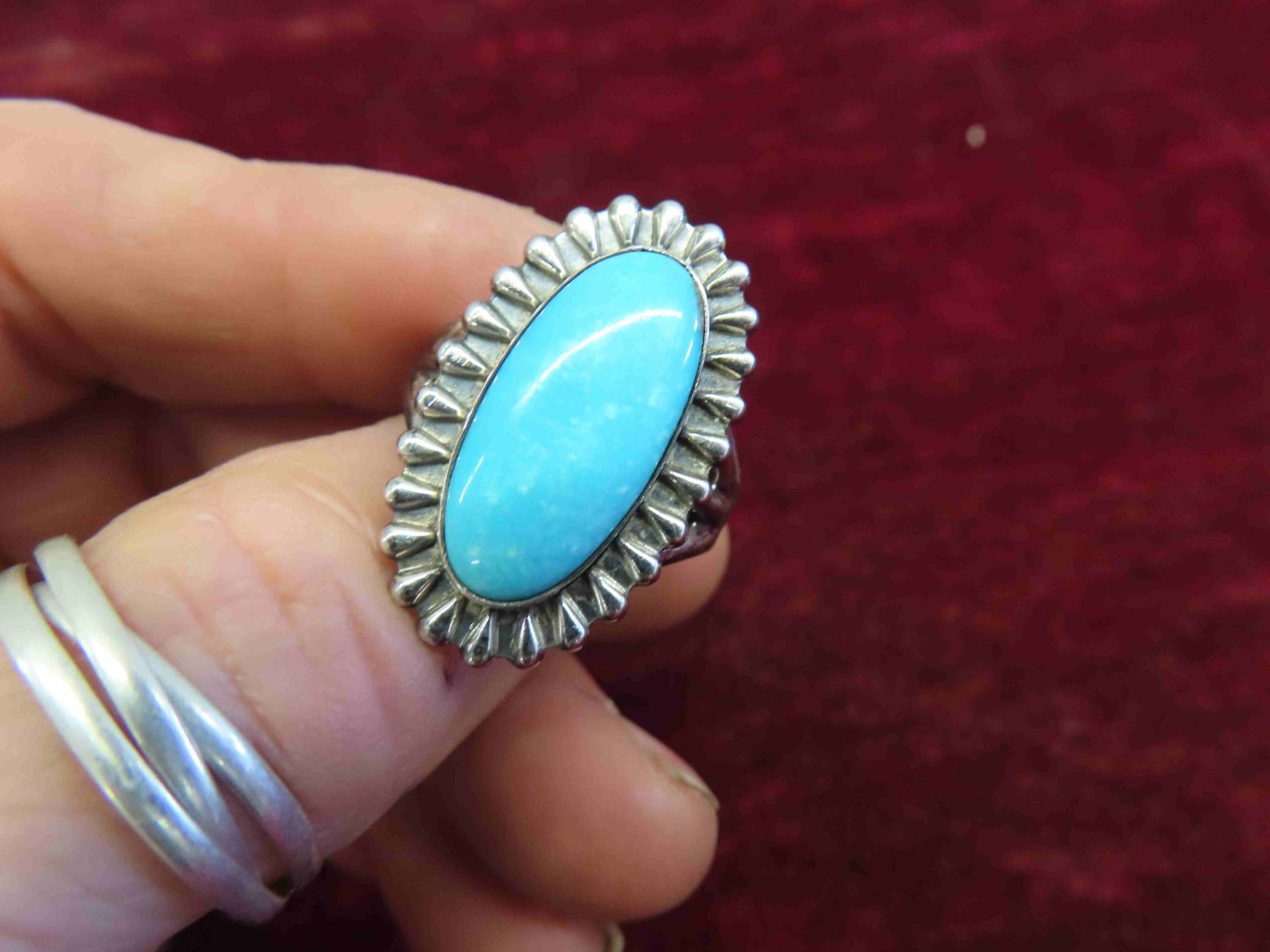 Sterling Silver and Turquoise Ring Size 8.5 Total Weight 7.3 Grams