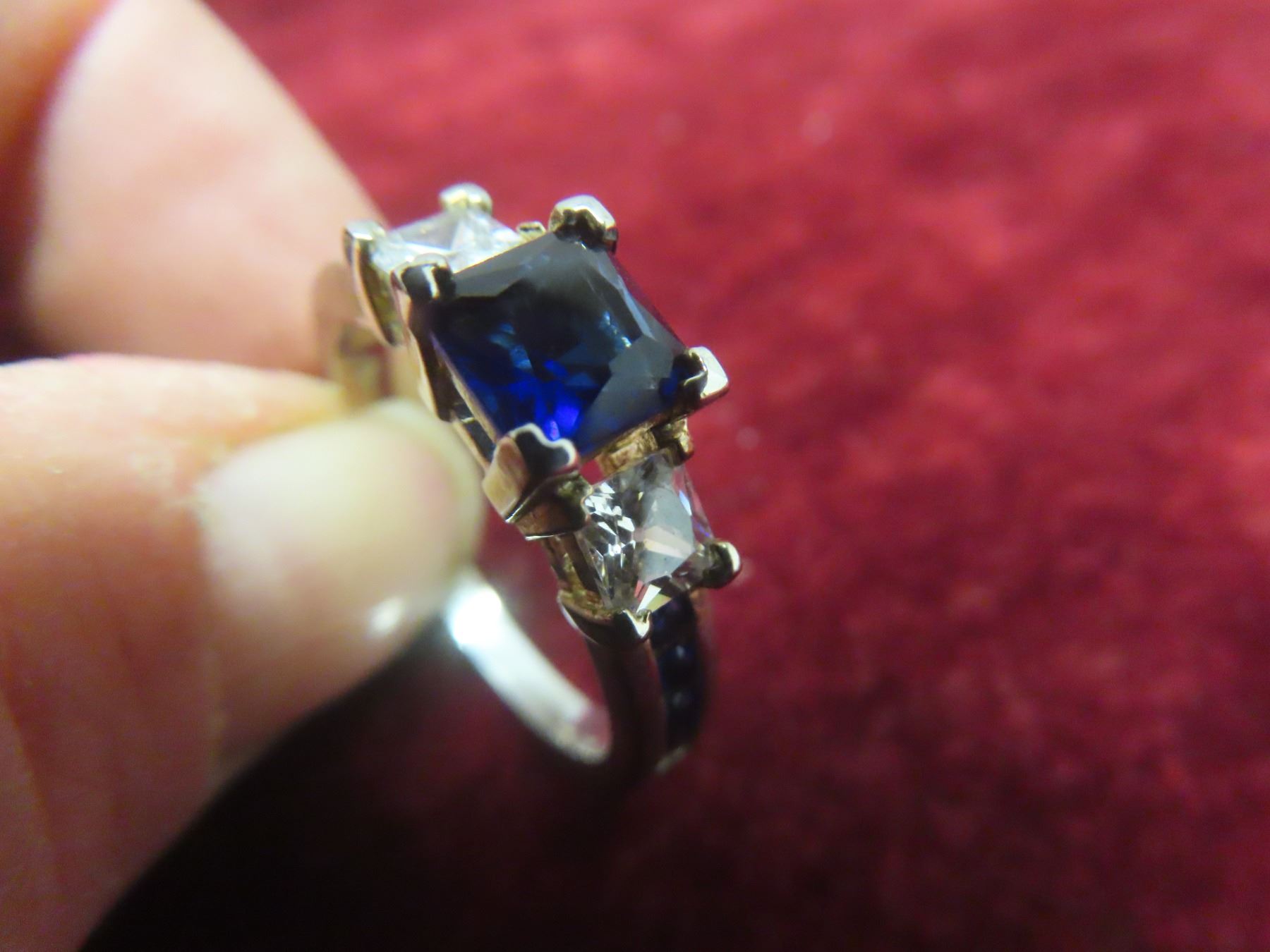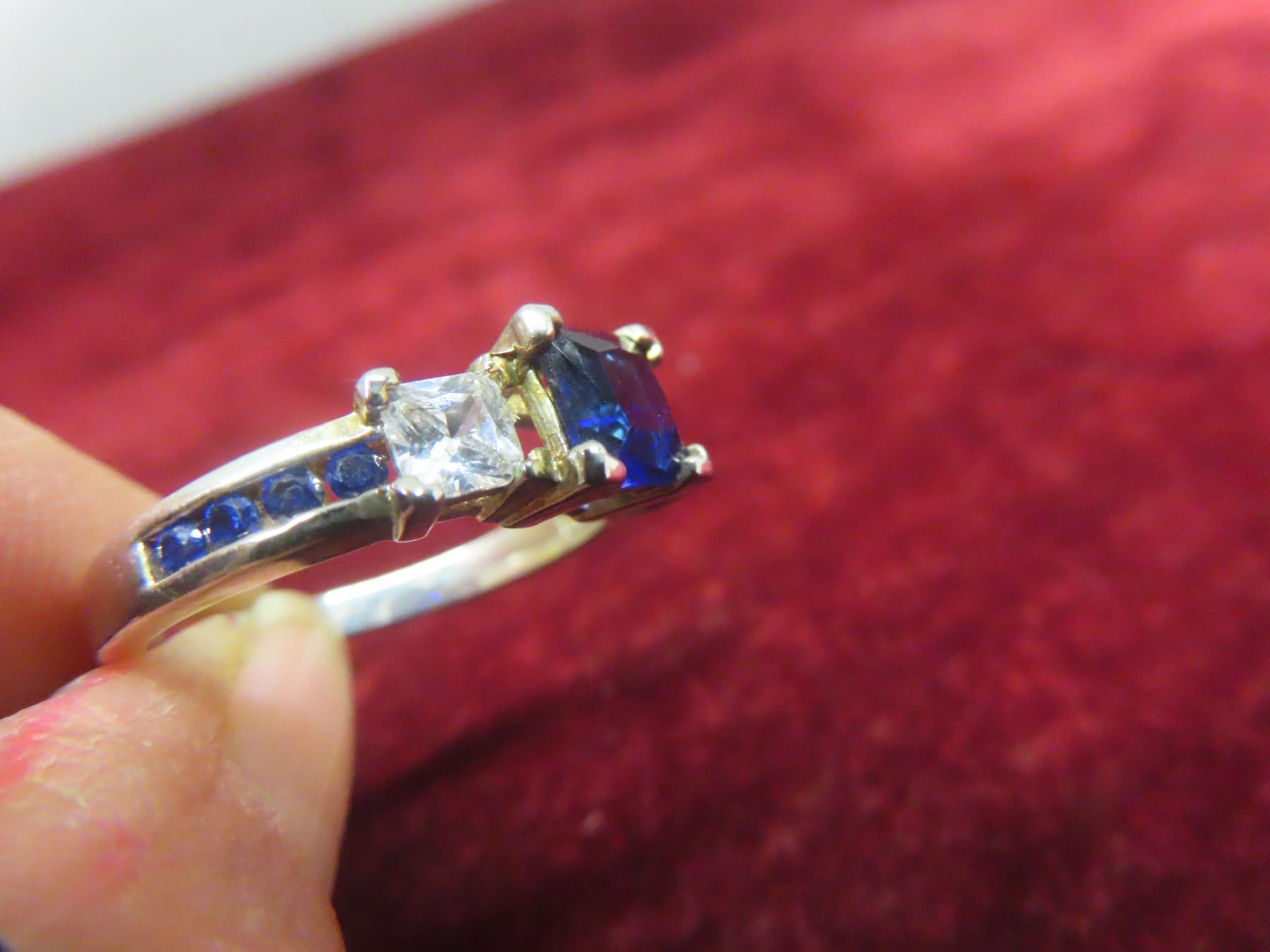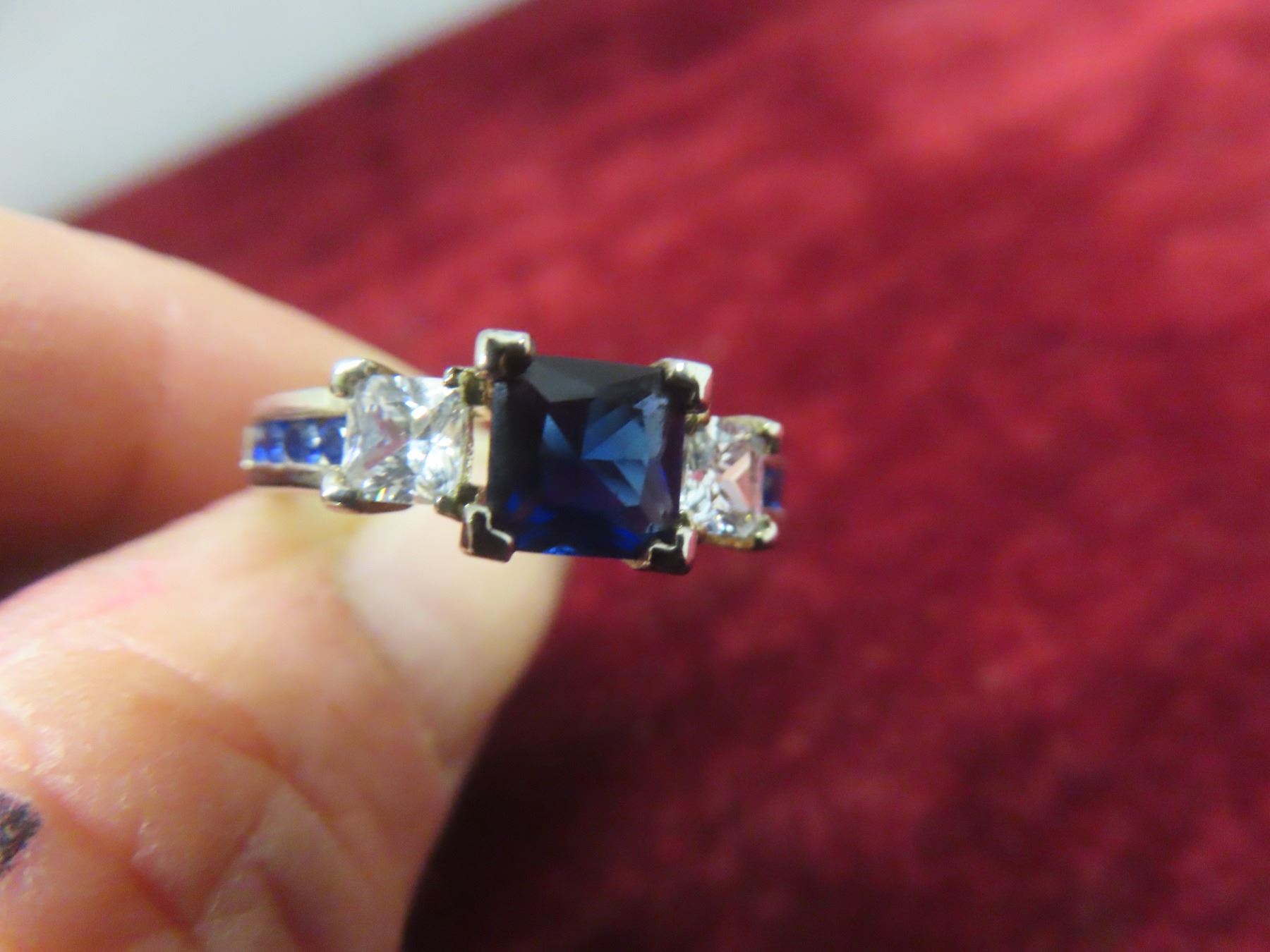 Sterling Steel and Sapphire Ring—No Appraisal or Certificate