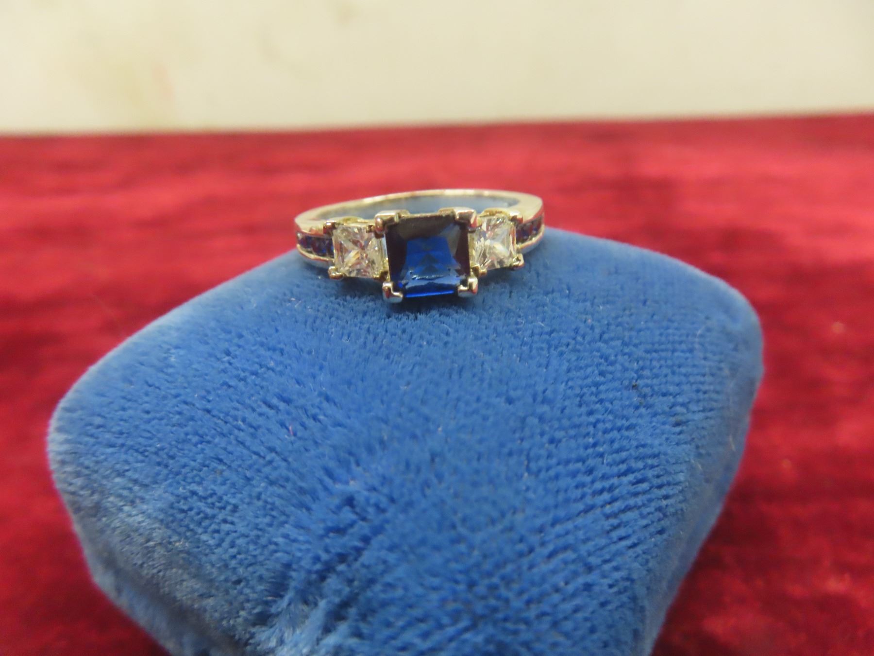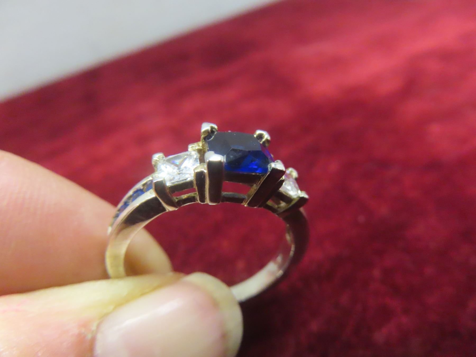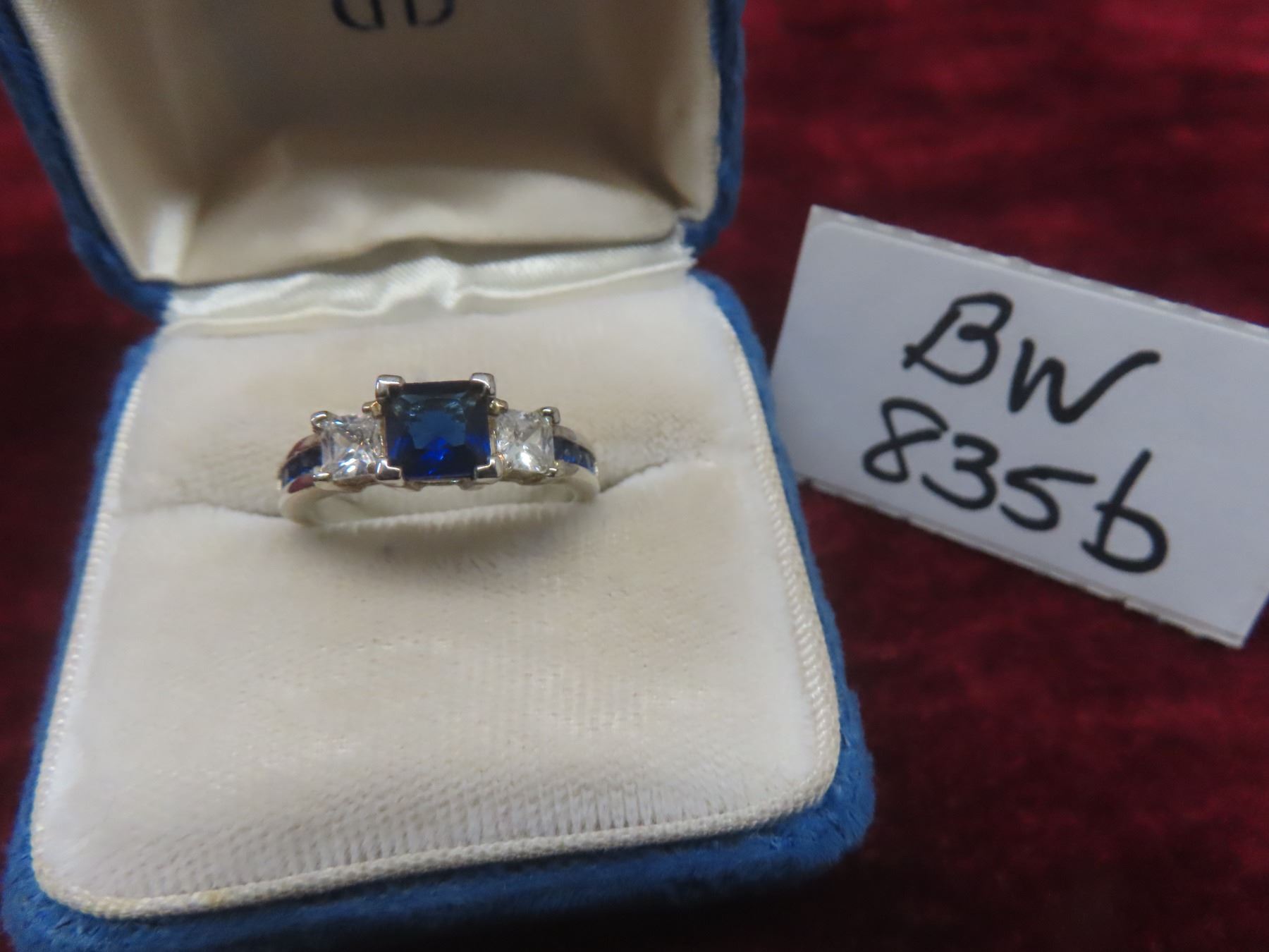 Sterling Steel and Sapphire Ring—No Appraisal or Certificate
