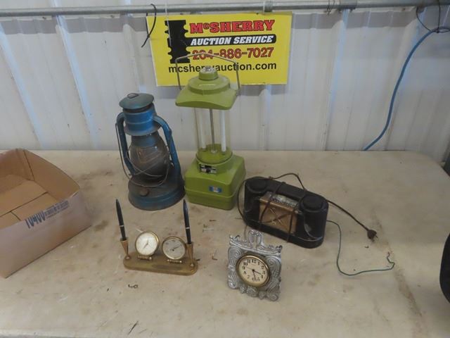 Stewart War TIme Radio, Lantern, Cast Europe Clock, Desk Set