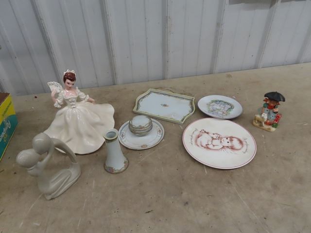 Stone Figurine & Misc Figurine Ornaments, Vase, Trinket Box &Trays/Plates
