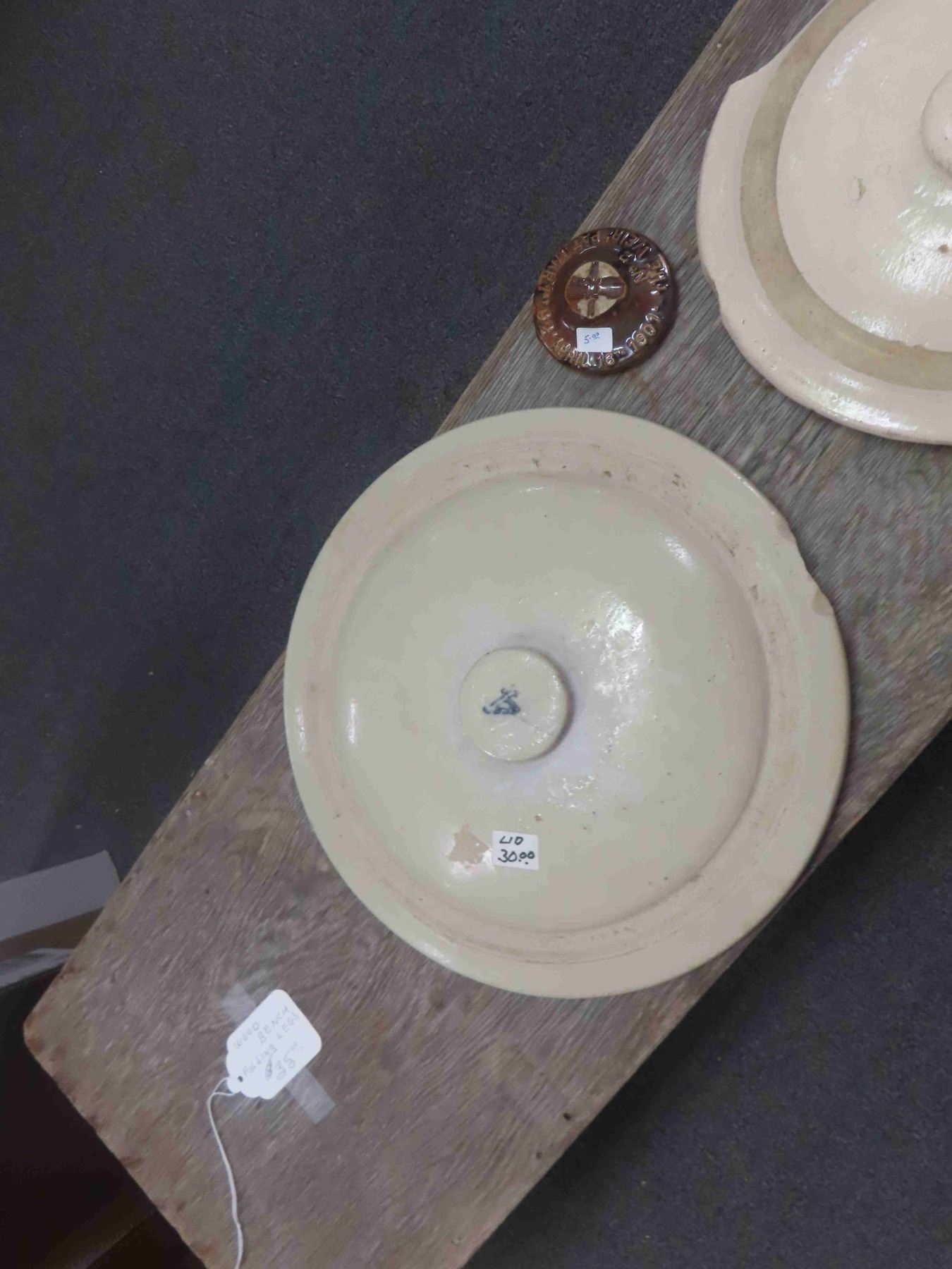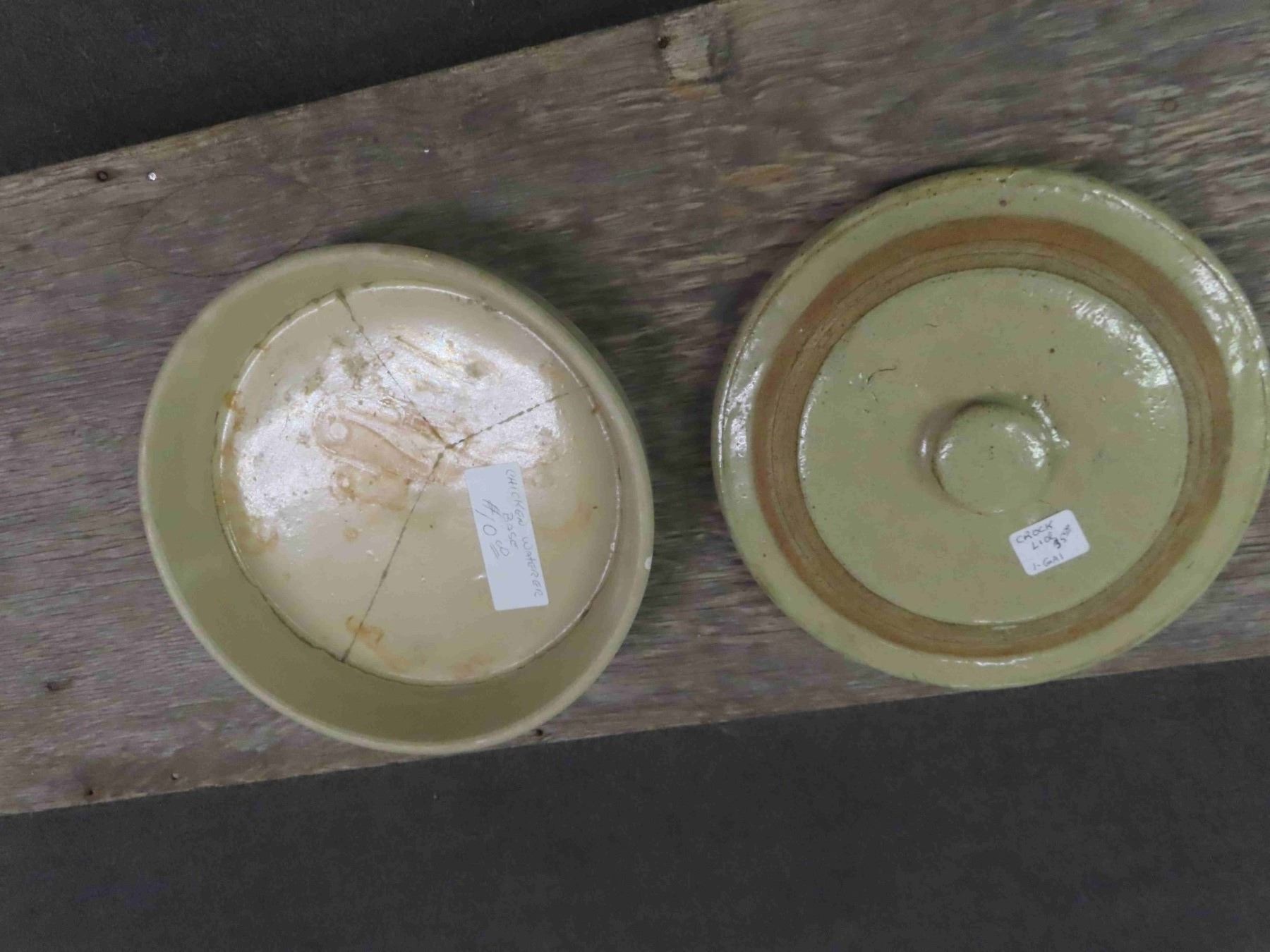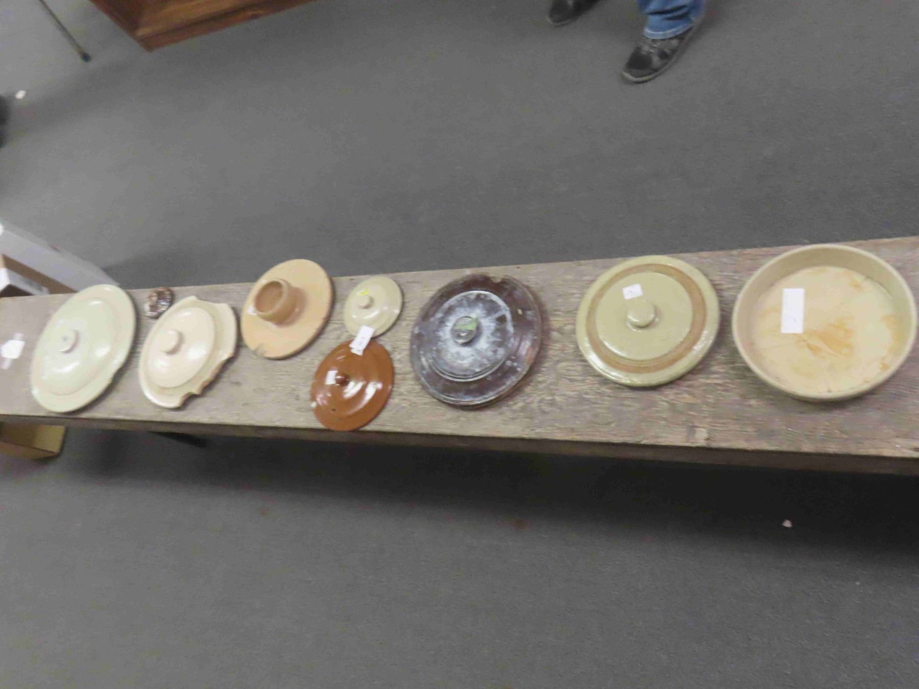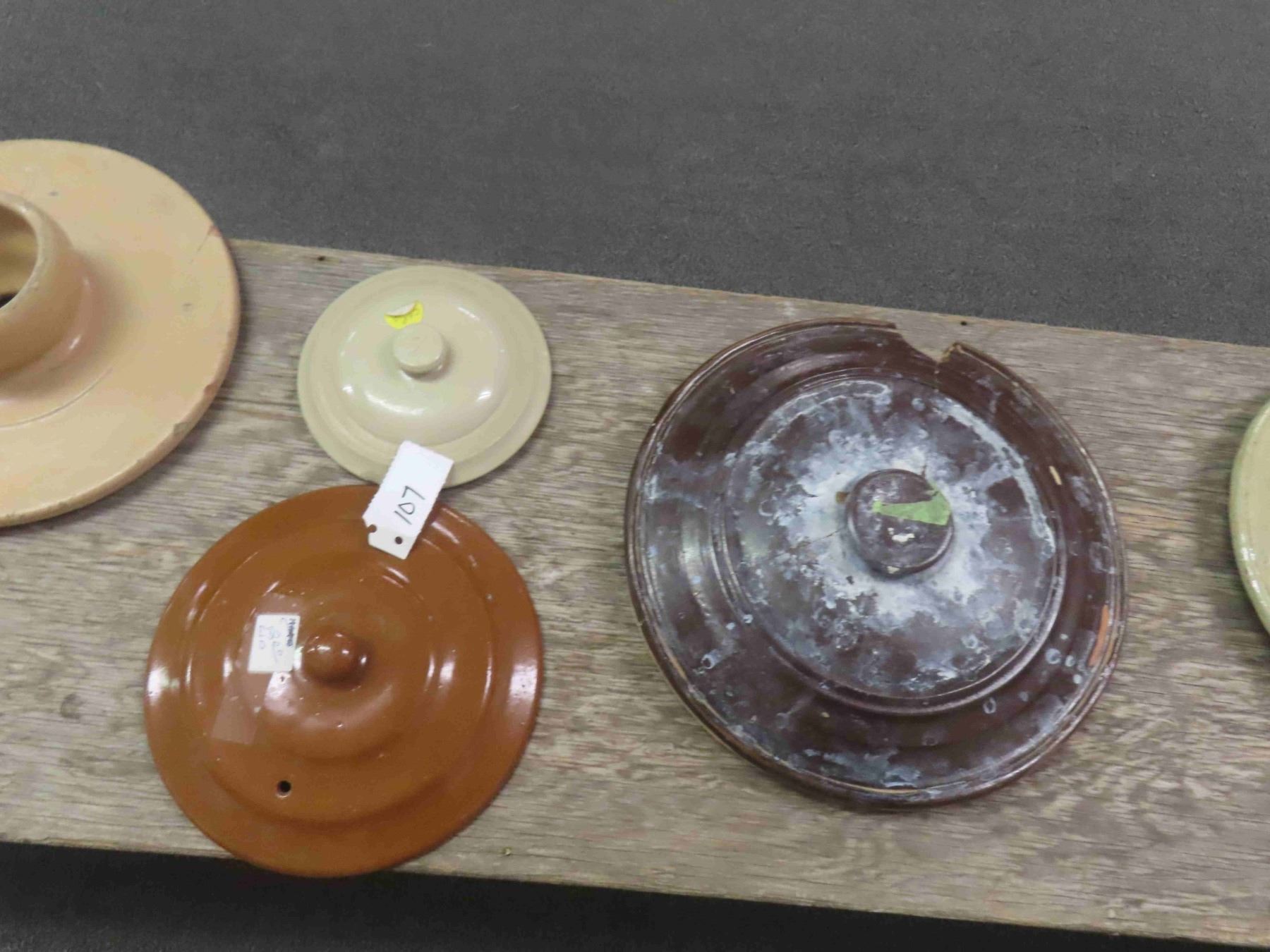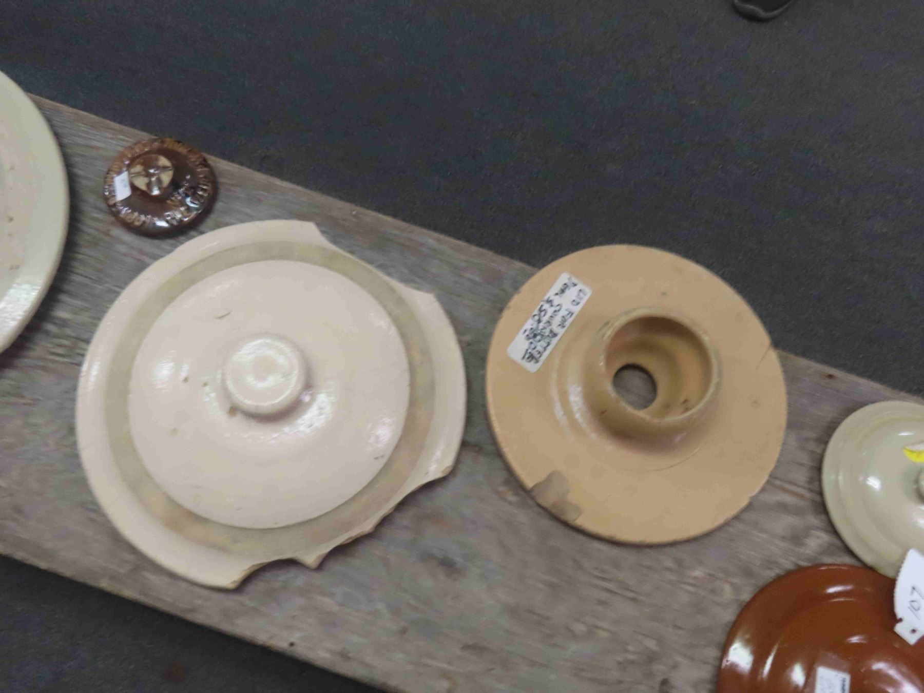 Stoneware Lids, Base From Chicken Feeder, Butter Churn - some good, some chipped