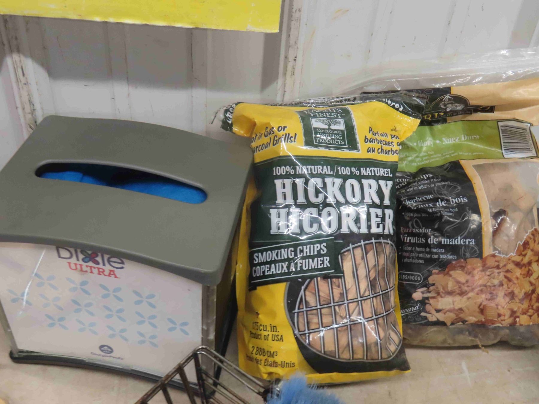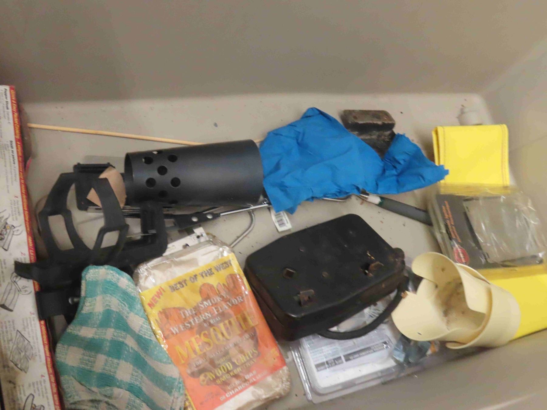 Storage Tub + Lid Full of Camp Cooking Gear, Flavored Smoker Chips, Utensils, plus more