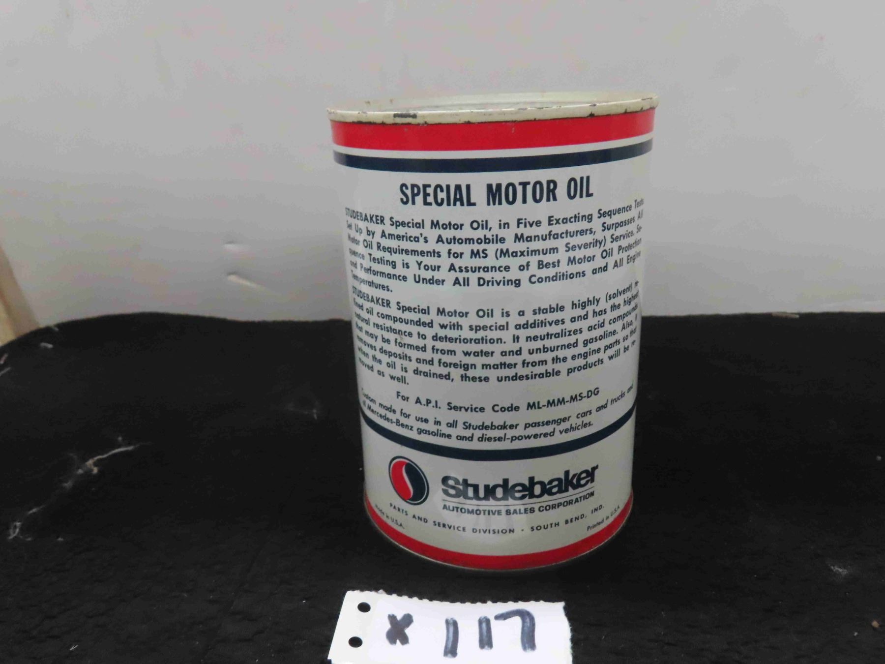 Studebaker Special Motor Oil Quartz Can with Product