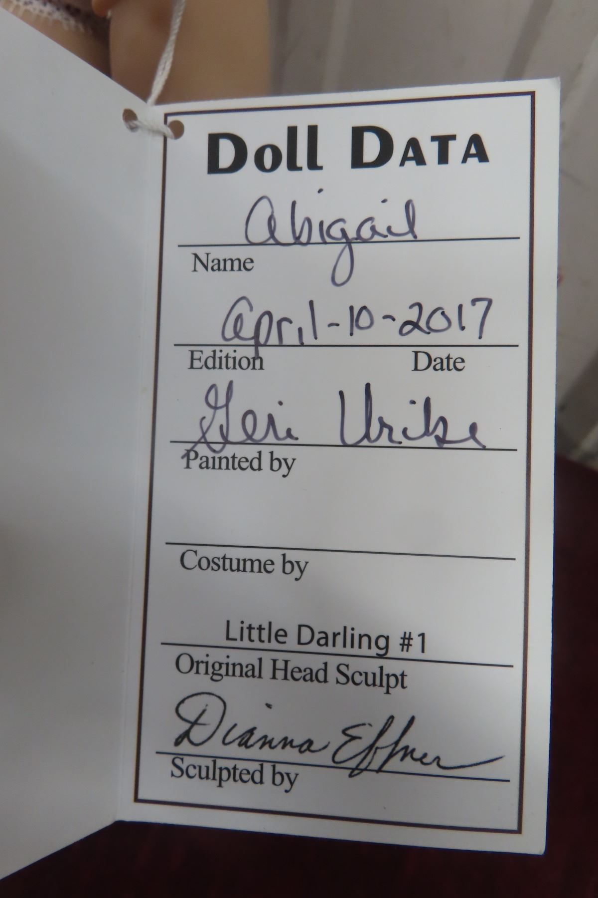 Studio Doll Original Artist Design “Abigaile” by Dianne Effner, 13" Vinyl, With Box and Doll Data