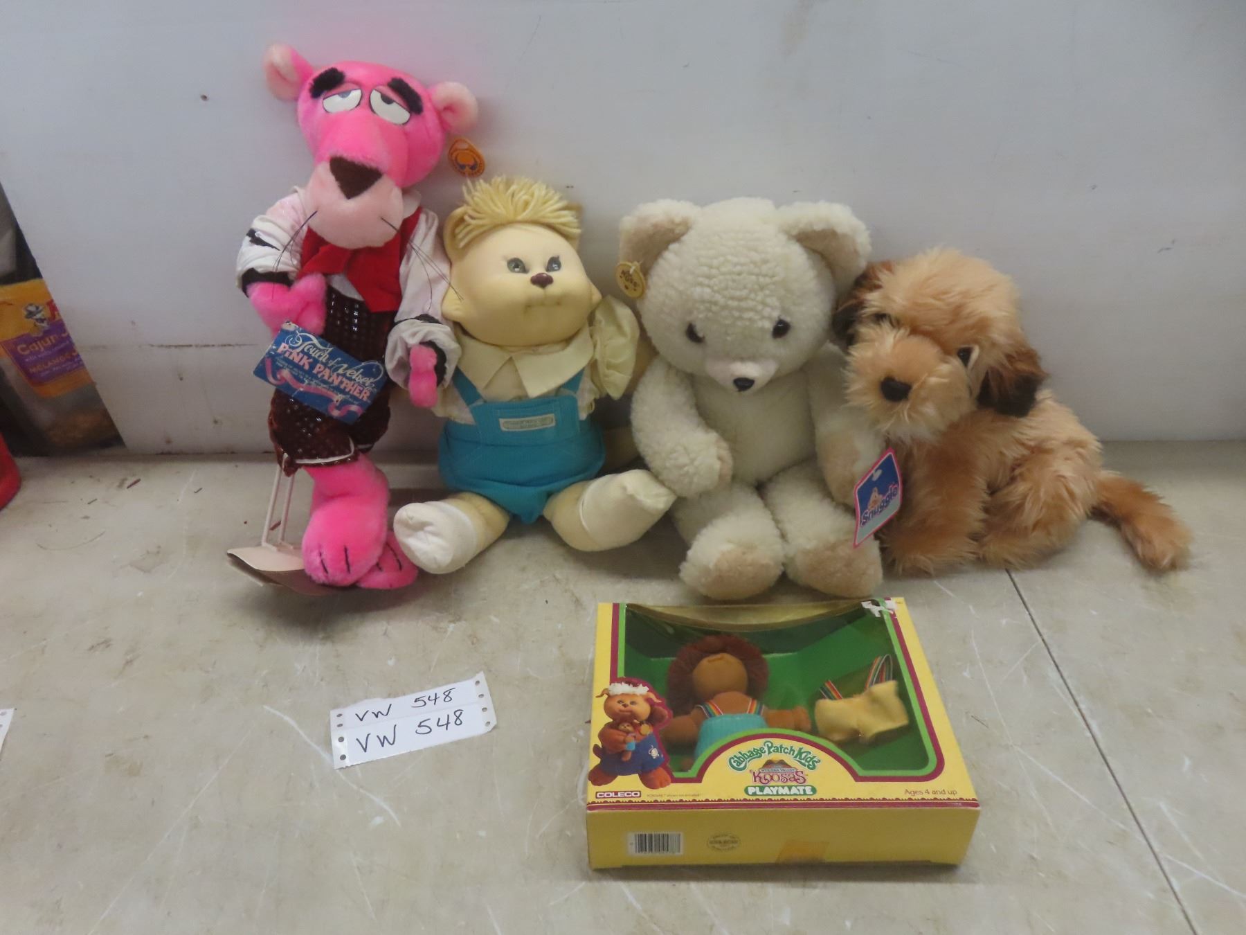 Assortment Of Stuffed Toys — Cabbage Patch, Koosas (Playmate In Original Package), Pink Panther, Snuggle, And Benji.
